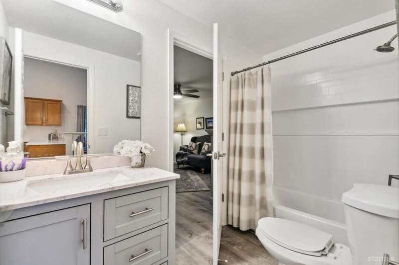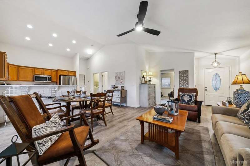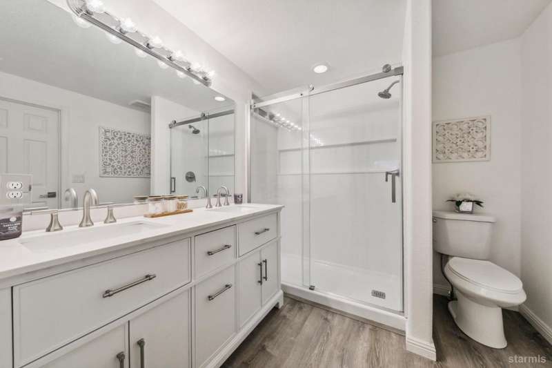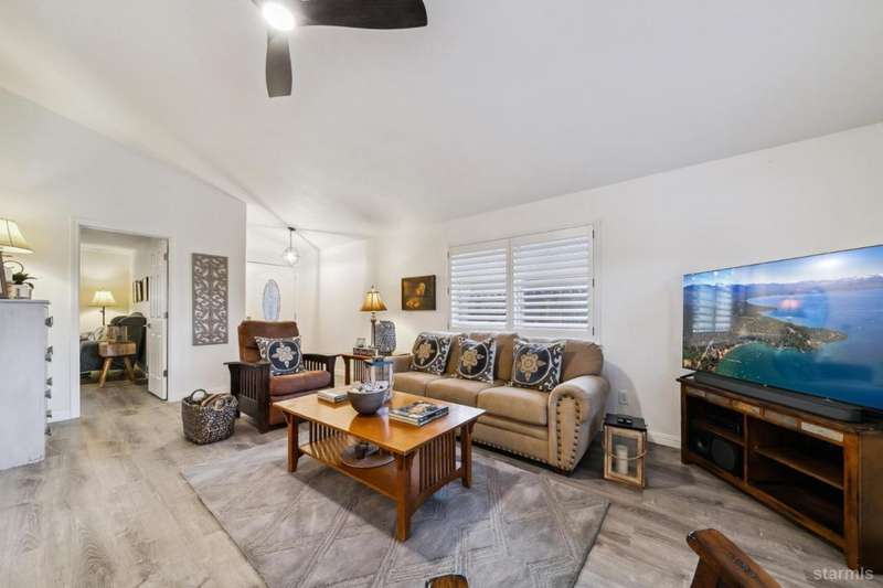 LOOKING for a STUNNING and meticulously remodeled GEM of a home in an EXCEPTIONAL location ? Experience the best of both worlds at 10 Conner Way, in Pine View Estates ~ Peaceful, nature-inspired living with the downtown Minden/Gardnerville just minutes away. This beautifully updated light, bright and airy, elegant home offers a perfect blend of modern upgrades and an abundance of natural light, highlighting the beautiful Life-Proof wide plank luxury vinyl flooring, providing durability and style. The neutral, completely repainted interior creates a warm and inviting atmosphere, perfect for entertaining and relaxing while enjoying the serene setting. This remodeled beauty features vaulted ceilings, an open living/dining area, plantation shutters throughout, a sleek, remodeled kitchen with stunning Bianco Calcutta quartz countertops, new energy efficient stainless steel GE Appliances, elevated breakfast bar w/ quartz counter, pantry in laundry room ample cabinet space. Additional upgrades include remodeled bathrooms: Master Bathroom ensuite has Kohler dual sink vanity w/Bianco Calcutta quartz , sleek glass shower enclosure /surround, new plumbing fixtures. The second bath has a new vanity with quartz top, shower surround, plumbing fixtures, lighting, etc. The interior also features modern ceiling fans, interior and exterior light fixtures/lighting, upgraded hardware, tankless water heater, new baseboards, door trim, NEST thermostat, Ring camera surveillance system and much more. Enjoy beautiful mountain views while sitting on your covered front porch or BBQing in your spacious backyard! The backyard is a true retreat, with expansive outdoor patio and ample space for entertaining while offering breathtaking mountain valley views perfect for relaxation while taking in the backdrop of Nevada's scenic beauty.. Enjoy hiking, biking and exploring right from your home with a rear access gate/6 ft chain link fence in the back, also providing exceptional views of the natural terrain and direct access to BIA land. This well cared for move-in-ready home situated on a large, beautifully landscaped lot with mature trees, vibrant flowers, lush green lawn, expansive outdoor rear entertaining area, is matchless for time spent with family friends, barbecuing or stargazing while enjoying the serene peaceful setting.Short 30 minute drive to beautiful Lake Tahoe to enjoy all it has to offer - skiing, boating, hiking, biking, camping minutes from downtown Minden/Gardnerville with