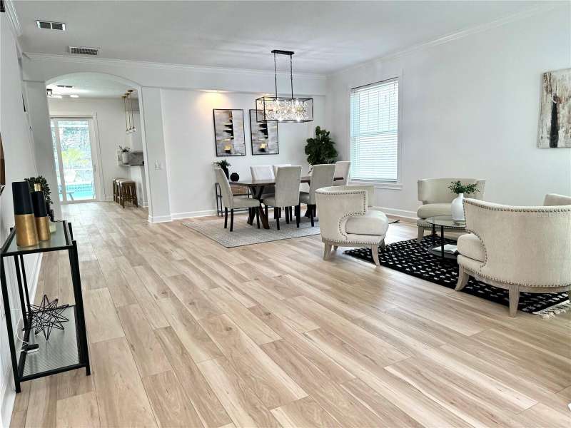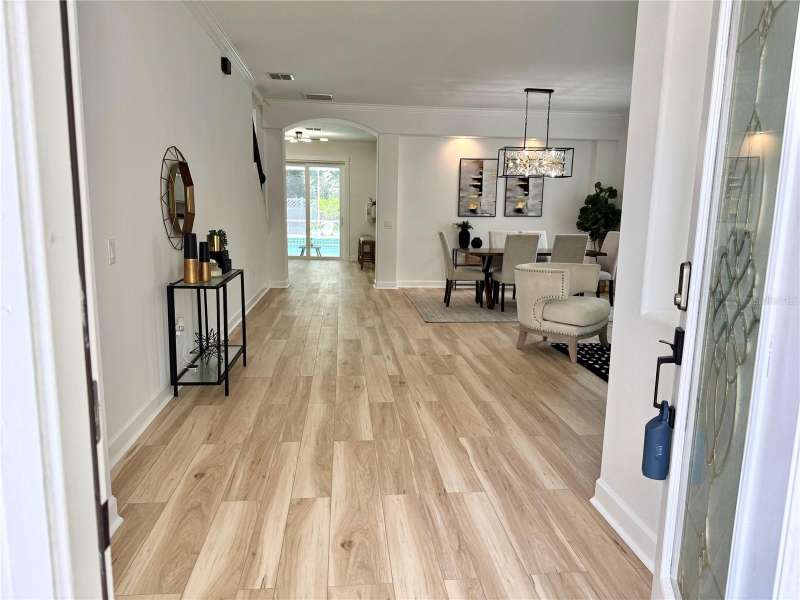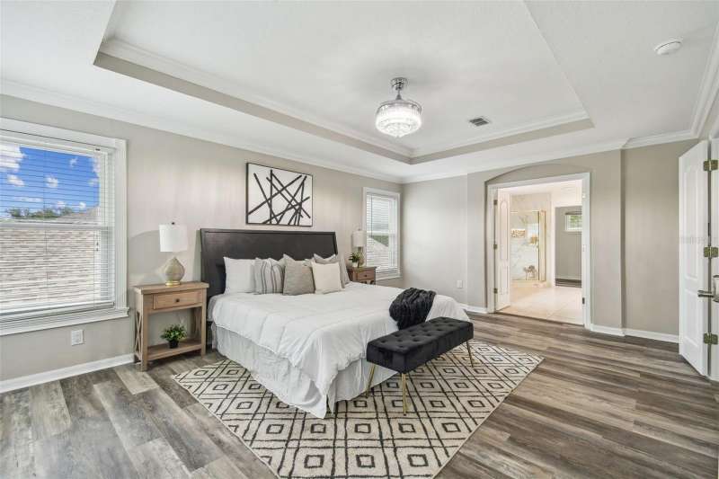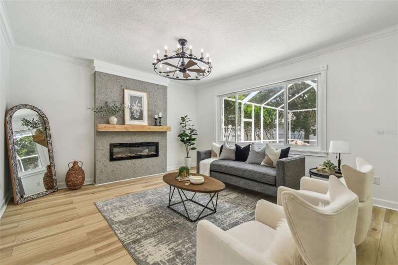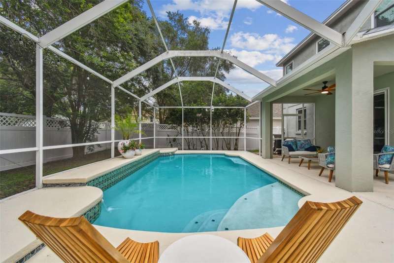 Back on the market with impressive new updates-don't miss this opportunity, it won't last long! Welcome to a newly remodeled gem—tucked away in the heart of Tampa Palms, one of Tampa’s most sought-after maintenance free communities. This impeccably reimagined four-bedroom pool home is the result of a top-to-bottom transformation, where every detail has been thoughtfully curated to elevate everyday living into something truly exceptional. From the moment you arrive, the crisp lines of the brand-new 2025 roof and freshly installed privacy fence set the tone for what awaits inside. Step through the grand entry and into light-filled living spaces with soaring ceilings, warm natural tones, and a seamless flow designed for both quiet moments and vibrant entertaining. The kitchen is a statement—crafted with premium materials, and an open layout that invites conversation and connection. Just beyond, the living and dining areas open effortlessly to the private lanai, where a sparkling pool glistens beneath the Florida sun, and the comfort of total privacy. Each bathroom has been meticulously remodeled, offering serene finishes and spa-inspired features, while the primary suite is a true retreat—generously sized, artfully styled, and designed for rest and renewal. Residents enjoy exclusive access to CLUB TAMPA PALMS featuring 3 pools, fitness center, sauna, playground, tennis courts, and more! With close proximity to top-rated schools, upscale shopping, fine dining, and easy access to I-75, this home offers the perfect blend of sophistication, comfort, and location. A rare opportunity—crafted for those who appreciate distinction.