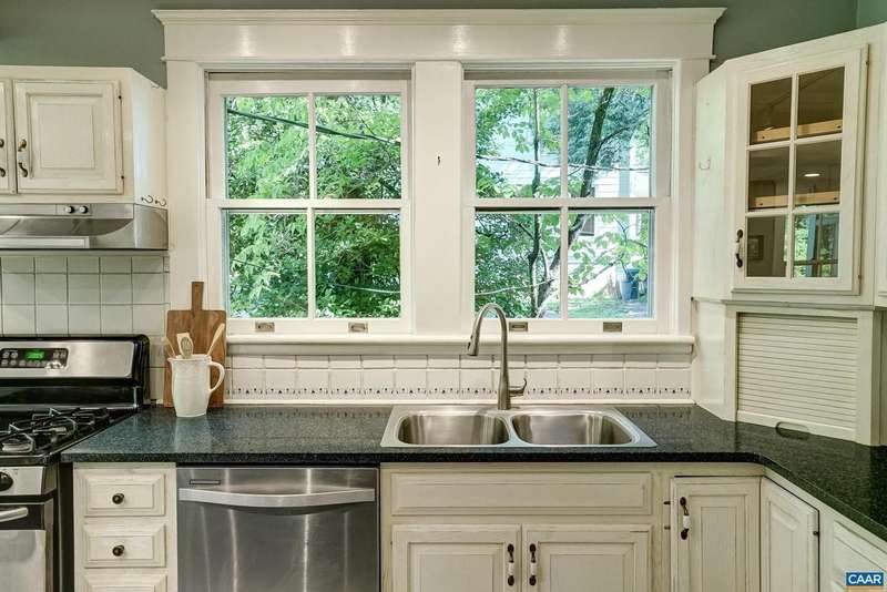 Located on 1+ acre with lush landscaping providing privacy and year-round color, garden space and off street parking! Beautiful downtown home with stunning addition (2020), detached, income generating cottage, and detached 2-car garage with studio/office space in the charming Frys Spring neighborhood of Charlottesville. Solar panels provide 100% of electricity depending on the season. This unique custom home features original hardwood floors throughout the main house, with a large living room that opens to the formal dining room. The newly added kitchen features quartz countertops, white cabinets, high-end Kitchenaid appliances and an eat-in breakfast nook. Main level living with the expansive light-filled primary suite that features a luxurious spa-like bathroom, walk in closet and screened porch access. Upstairs three generously sized bedrooms share a full hall bathroom, and a fourth bedroom could be converted from a built-in closet back to a fifth bedroom if desired. The detached 2-car garage features a ground floor office/workout space, half bathroom and loft area, and the income-generating 2 bedroom cottage features a kitchenette, full bathroom and living room. Off street parking in driveway for 4 cars!,Painted Cabinets,Quartz Counter,Wood Cabinets,Fireplace in Living Room
