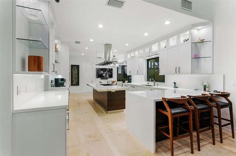 Remarkable Deepwater Estate sited on 100’± of waterfrontage on the wide Flamingo Canal in sought-after Lighthouse Point on a rare island street. This classic “South of Sample” estate reveals 4 beds, 4.1 baths & 4,236 Total SqFt. Impressive double height foyer opens to the re-imagined light-filled interiors. Each level encompasses a primary waterfront suite & garden front guest suite all with updated en-suite baths. Gourmet kitchen w/custom cabinets & Wolf/Subzero appliances. Other amenities include 2 Bay Garage, Impact Windows, new carpet, 3 zone A/C, custom walnut built-ins & security cameras. Outdoor entertainment is enjoyed at the sun-splashed pool secluded in lush landscaping. For boating enthusiasts, there is a full service 90’+/- dock just minutes from the Hillsboro Inlet.