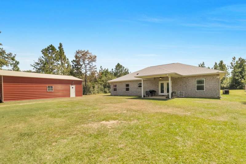 2.66 ACRES!! Welcome to this breathtaking brownstone brick custom-built home, completed in November 2024, located on a gorgeous piece of private acreage in the highly sought-after Pace, Florida. With impeccable attention to detail, this home blends modern luxury with practicality, offering the perfect retreat for both relaxation and entertainment. The home comes equipped with a smart doggy door, ensuring convenience for your furry family members, while the entire home is designed with modern, easy-to-use technology that enhances daily living. The chef's kitchen features sleek granite countertops, perfect for meal prep, with ample storage and a layout that flows seamlessly into the rest of the home. The spacious master suite offers a private sanctuary, complete with oversized his and her walk-in closets. A spa-like master bath provides the ultimate place to unwind after a long day. The property includes a 24x36 metal building with electric, providing ample space for a workshop, storage, or additional vehicles. The possibilities are endless! Also included with this home is a 30 AMP Hookup as well as sewage for an RV! Situated just a short drive from Pensacola Beach, you'll have quick access to white sandy shores and the Gulf Coast's stunning waters. Plus, the natural beauty of Blackwater River is right at your doorstep, offering endless opportunities for outdoor recreation, from kayaking to hiking. Whether you're looking for a peaceful retreat or a place that's close to everything, this home provides the best of both worlds. Schedule your tour today and see for yourself why this is the ideal place to call home! Seller will provide a 1 year Home Warranty and contribute to closing costs. Ask an agent for details.