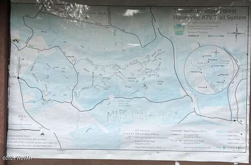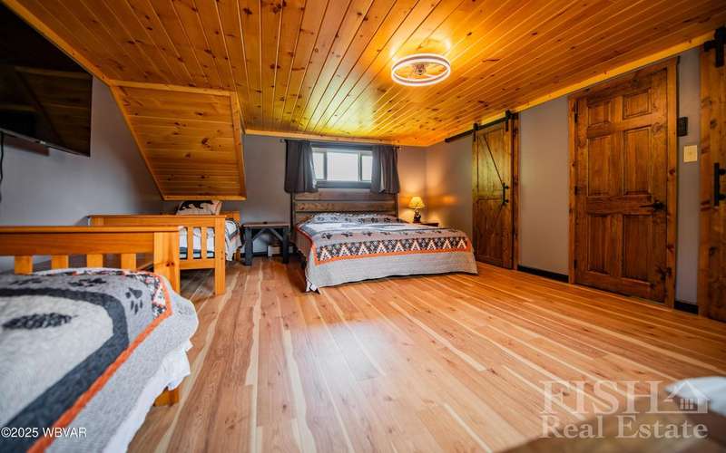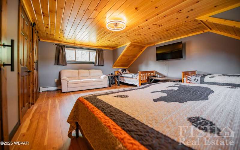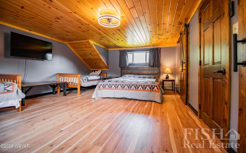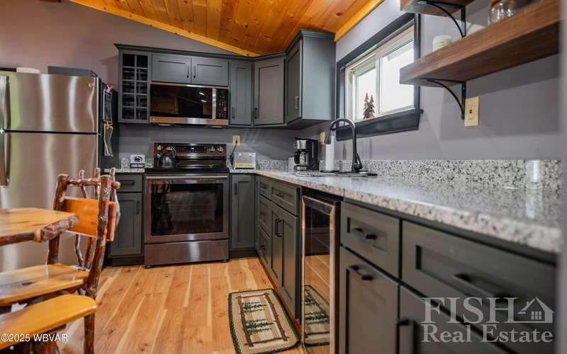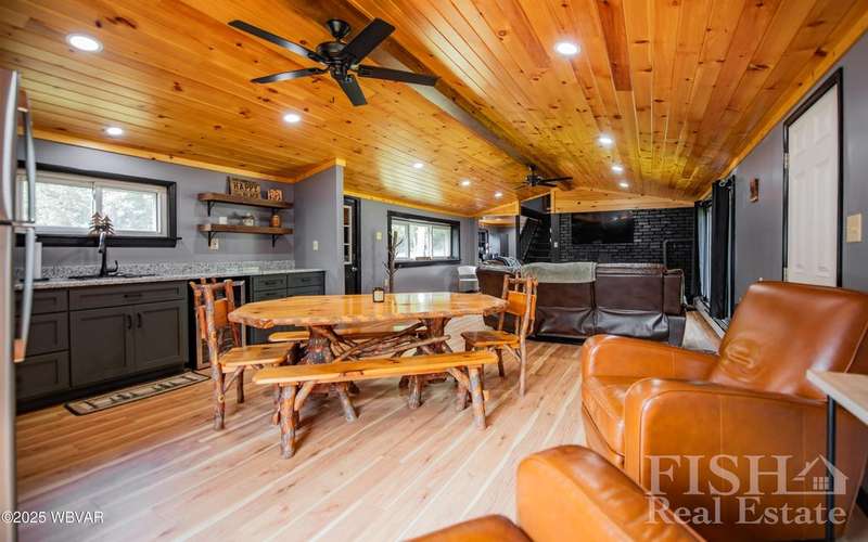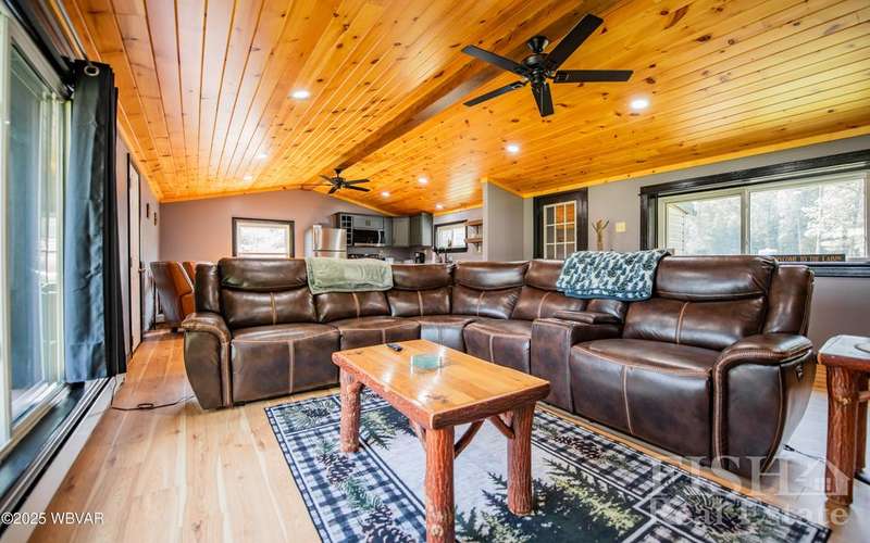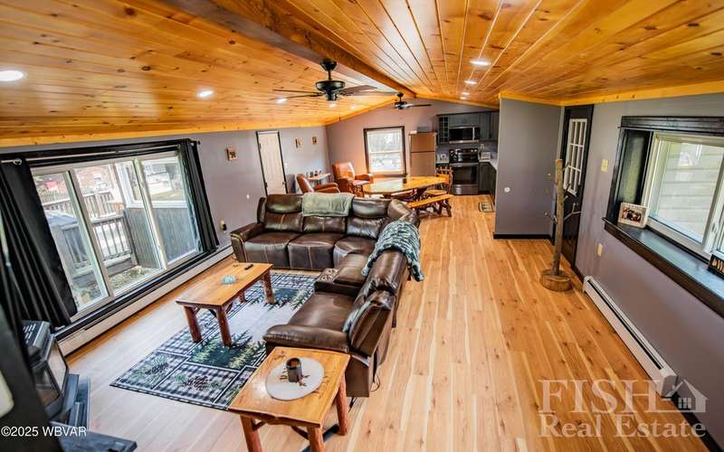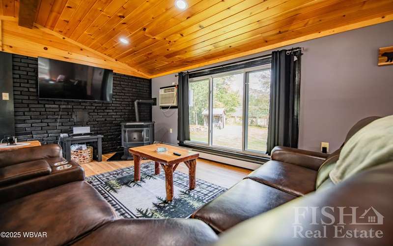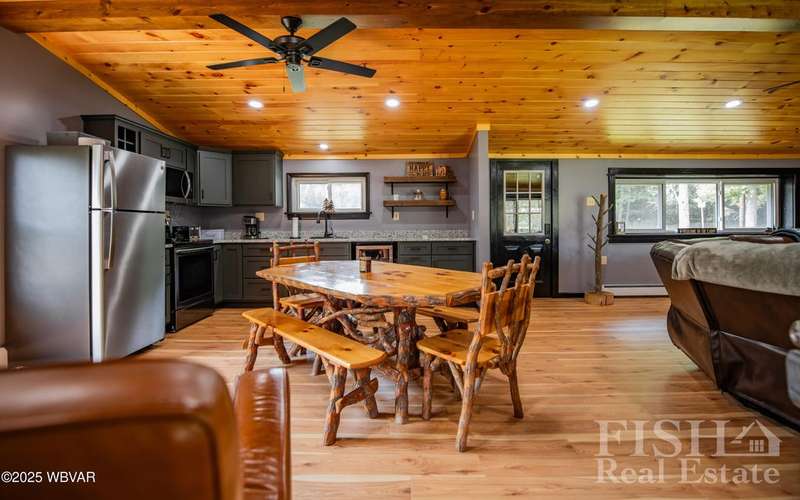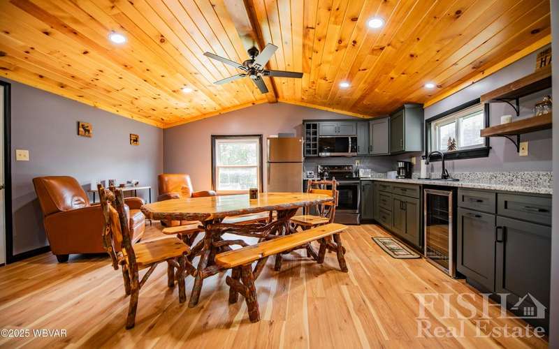 Here's your chance to own a totally updated 3BR/2BA cabin/home featuring an open kitchen/living room concept with beautiful wood cathedral ceilings. The kitchen highlights new custom cabinetry and granite countertops. There are two updated full bathrooms, one with a surround tile shower and the other an oversized soaking tub. There are two heat sources - an oil hot water furnace new in 2022 and two pellet stoves (one in the upstairs living room and other in the basement). Drive your ATVs/mower into basement through the newly installed double doors. Large fenced-in backyard. Not only is it closely located near PA State Game Lands and ATV trails, but a short walk to the popular Mountain Top and Provisions restaurant. Drive your ATVs from cabin to the ATV trails. New low price of $359,900.