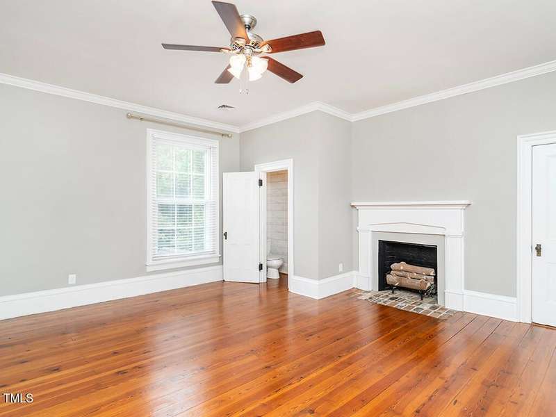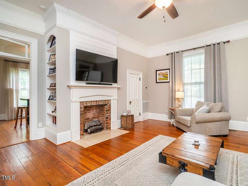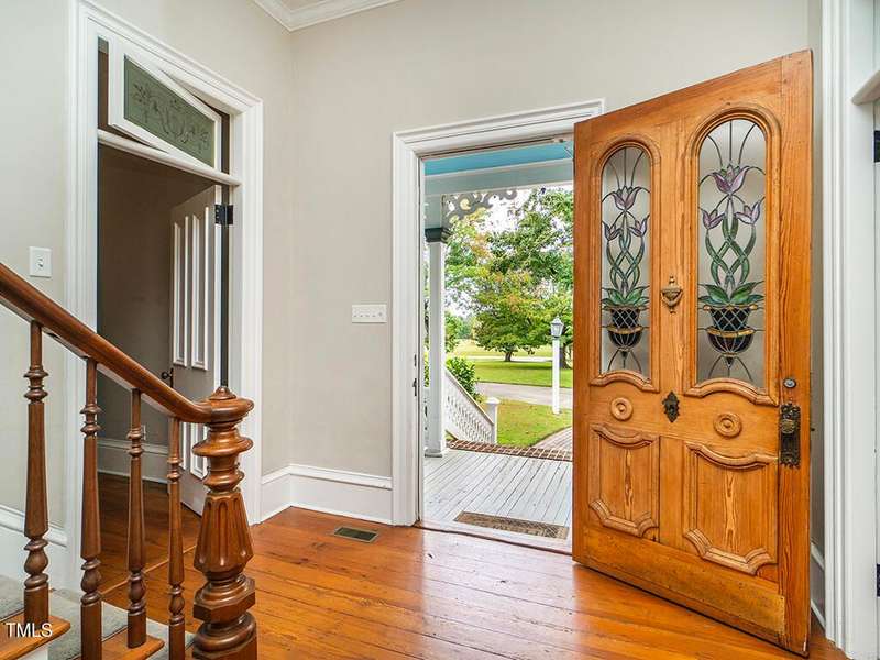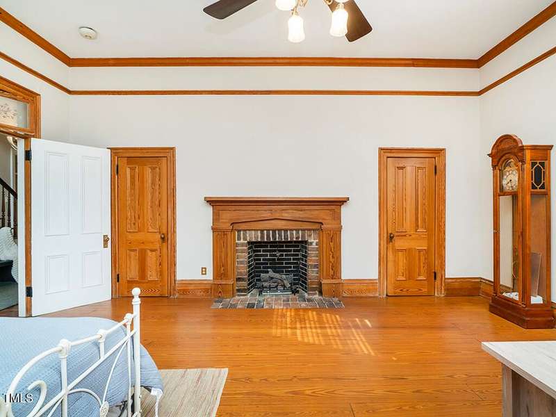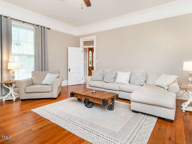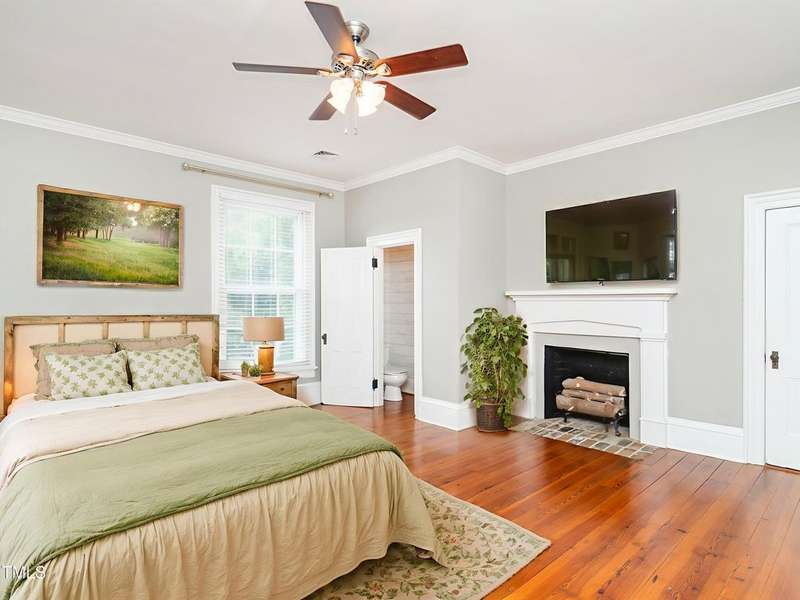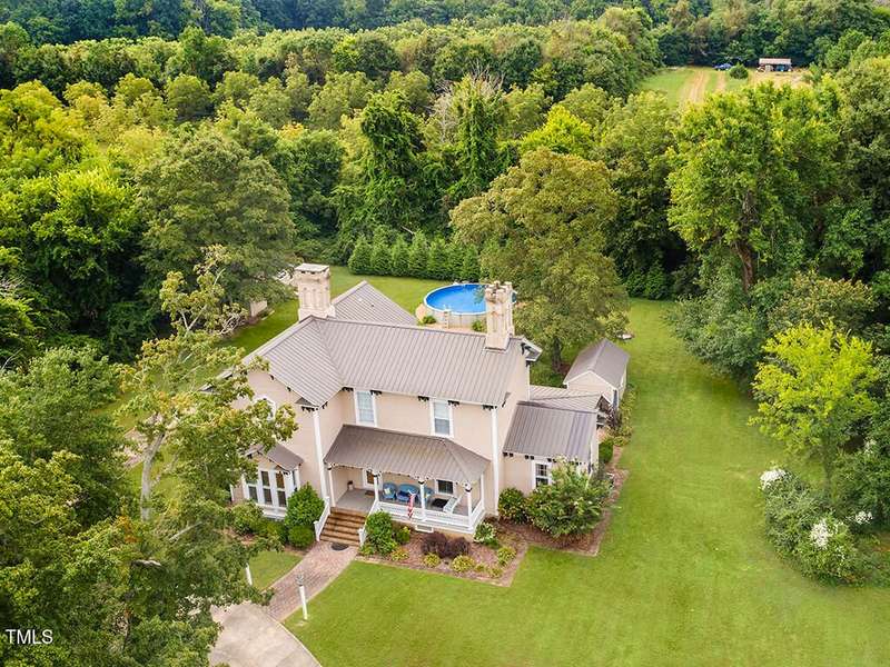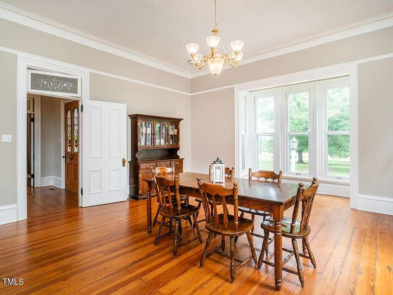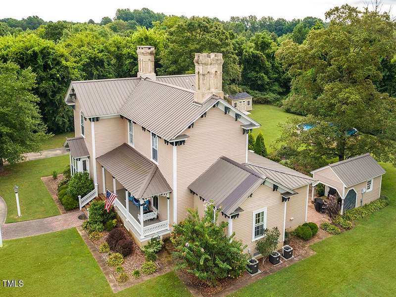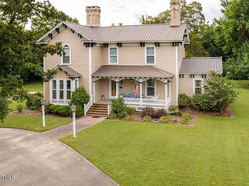Built in 1871 and listed on the National Register of Historic Places as the Sunny Side House, this gorgeous home sits on over two acres and beautifully blends historic charm with modern updates. The main level boasts 11-foot ceilings, except kitchen & bath addition, while the second level offers 10-foot ceilings, with heart pine floors running throughout. Seven fireplaces have been converted to gas logs, adding warmth and character to nearly every room. The walnut handrails and balusters highlight the home's craftsmanship. The kitchen was thoughtfully remodeled in 2017 with quartz countertops and soft-close cabinets, complementing the home's timeless appeal. The primary suite is located upstairs with a spacious en-suite bath, while a large main-level bedroom serves as a perfect guest retreat or alternate primary. Another upstairs bedroom offers its own private bath. Outdoor living features a rocking chair front porch, rear patio, above-ground saltwater pool, original wired smokehouse and well house, circle driveway, and a 50-amp RV connection with parking pad. This one-of-a-kind property offers rare history, elegance, and comfort.