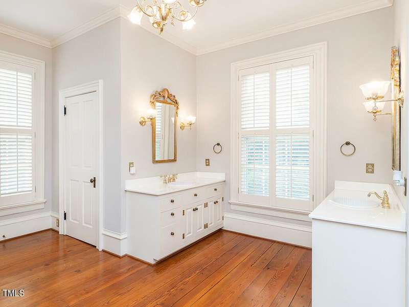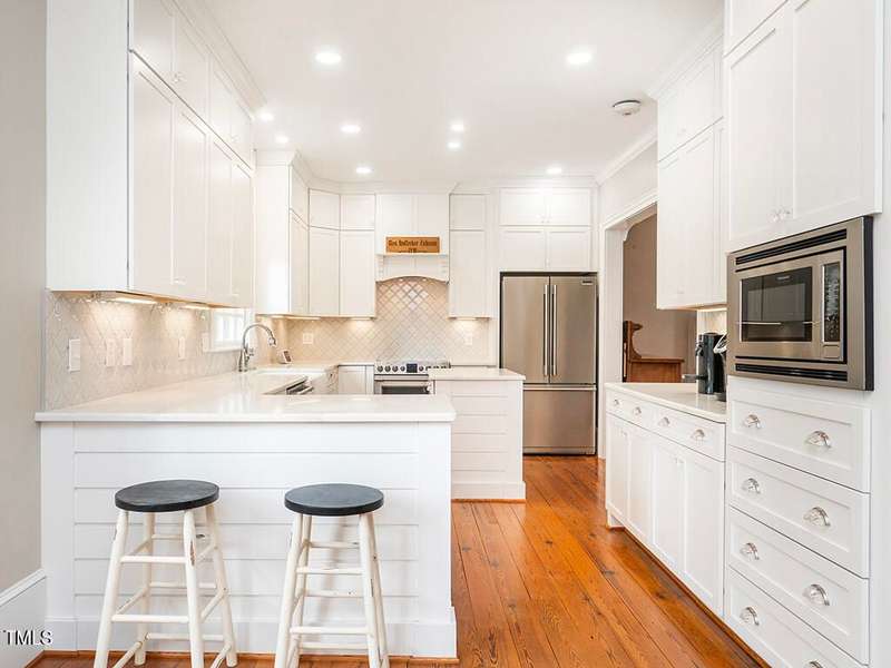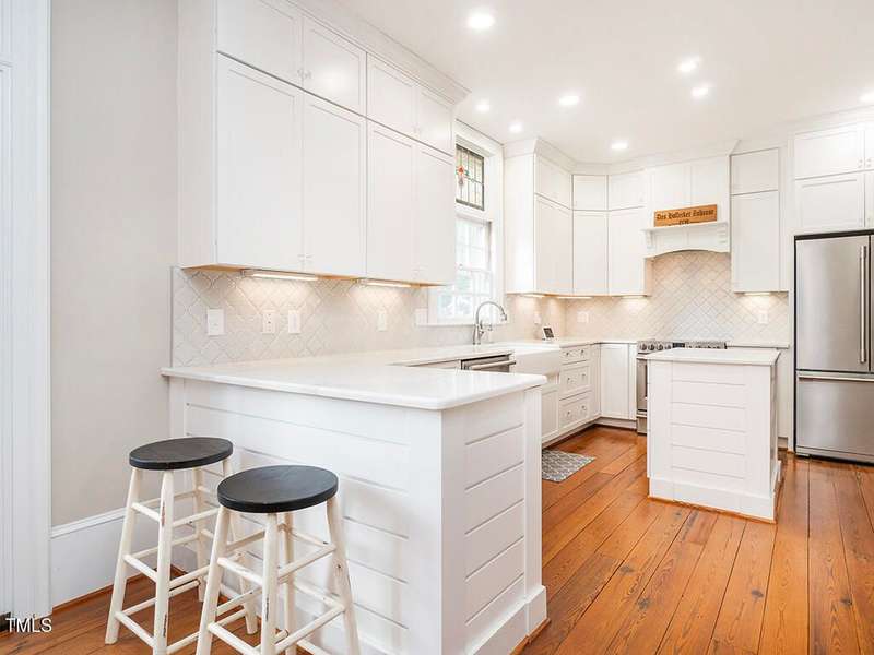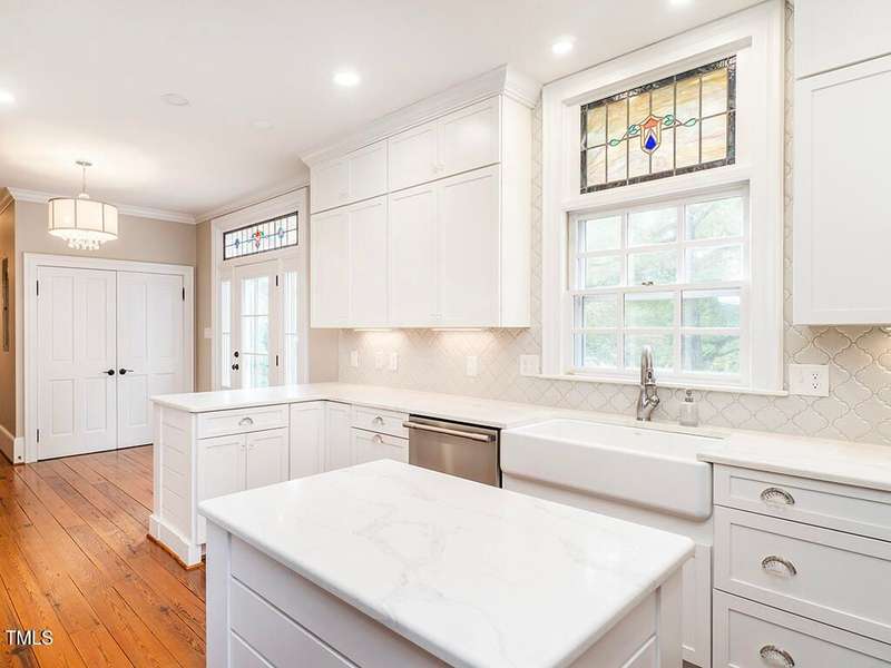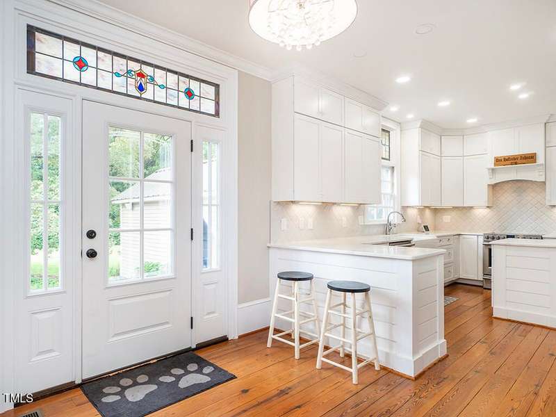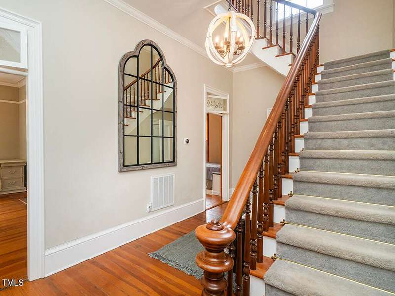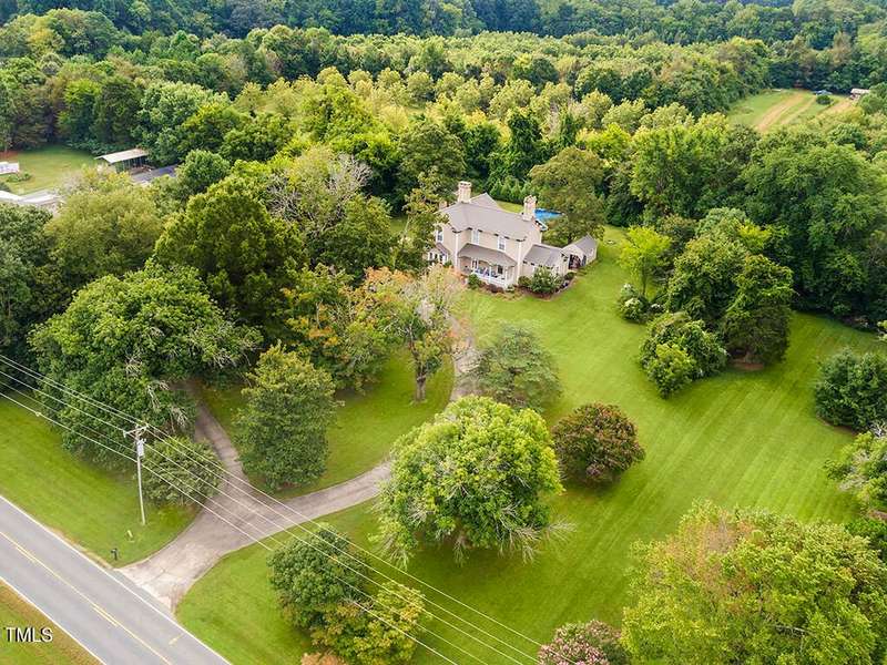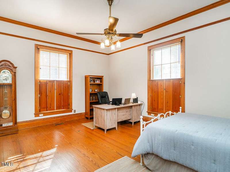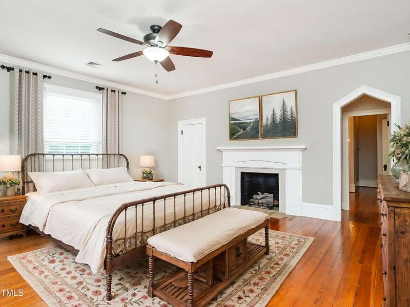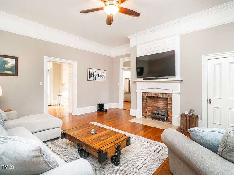 Built in 1871 and listed on the National Register of Historic Places as the Sunny Side House, this gorgeous home sits on over two acres and beautifully blends historic charm with modern updates. The main level boasts 11-foot ceilings, except kitchen & bath addition, while the second level offers 10-foot ceilings, with heart pine floors running throughout. Seven fireplaces have been converted to gas logs, adding warmth and character to nearly every room. The walnut handrails and balusters highlight the home's craftsmanship. The kitchen was thoughtfully remodeled in 2017 with quartz countertops and soft-close cabinets, complementing the home's timeless appeal. The primary suite is located upstairs with a spacious en-suite bath, while a large main-level bedroom serves as a perfect guest retreat or alternate primary. Another upstairs bedroom offers its own private bath. Outdoor living features a rocking chair front porch, rear patio, above-ground saltwater pool, original wired smokehouse and well house, circle driveway, and a 50-amp RV connection with parking pad. This one-of-a-kind property offers rare history, elegance, and comfort.