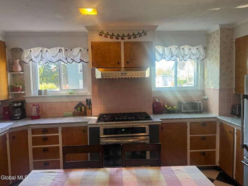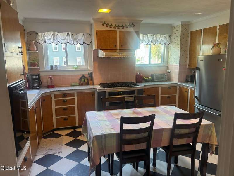 Step back in time with this beautifully converted former neighborhood meat market, now a spacious single-family home with endless possibilities. Offering 6 bedrooms, 2.5 baths, a sunny eat-in kitchen, oversized family room, and inviting living room, this property is filled with charm and character. The grand foyer and period details showcase its 1800's heritage. With 4 separate entries, this versatile property could serve as a warm and welcoming family home or an ideal bed-and-breakfast. Extras include a fenced yard, quaint patio, oversized garage with storage area, and a parking lot that accommodates 10-12 vehicles. Upstairs, enjoy a second sitting area. Truly one-of-a-kind with space, history, and opportunity all in one.