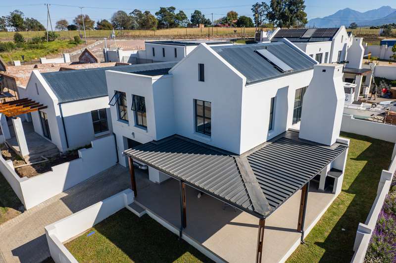 Modern 3-Bedroom Home with Mountain Views in Secure Mountainview Estate Enjoy secure, stylish living in this beautifully designed double-storey home in the exclusive Mountainview Estate, offering panoramic views of the Outeniqua Mountains and the charming town of George. This 174m² residence is set on a 264m² erf and features three upstairs bedrooms, including a spacious main suite with en-suite bathroom. A full family bathroom and a convenient guest toilet complete the well-thought-out layout. Downstairs, you’ll find a spacious open-plan living and dining area that flows into a modern, well-equipped kitchen with a gas hob—perfect for both everyday living and entertaining. The living area opens to a 38m² wrap-around stoep with a built-in braai, ideal for hosting guests or simply enjoying the stunning views. The home includes a single garage, fibre internet connectivity, and is pet-friendly, making it perfect for families and animal lovers alike. Security is top-tier, with 24-hour manned access, electric fencing atop a 6-foot perimeter wall, and infrared surveillance cameras, all ensuring complete peace of mind in this secure, well-managed estate. Tranquil living—ideal for families, professionals, or retirees seeking the best of George. Estimated Completion: This brand-new home is currently under construction and is set for completion by 1 August 2025. Buyers will have the opportunity to move into a freshly built, modern home with the latest finishes—ready for immediate enjoyment and hassle-free living.