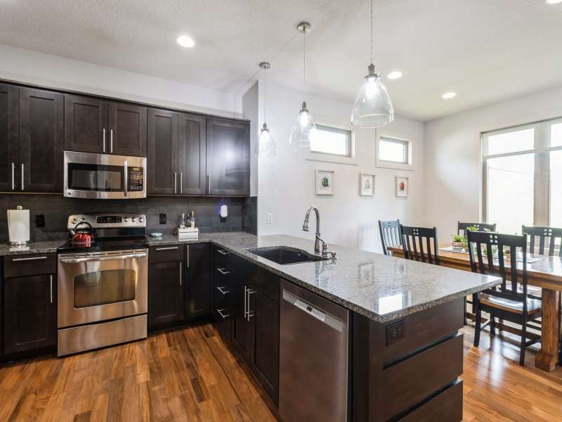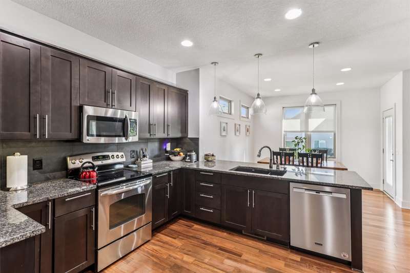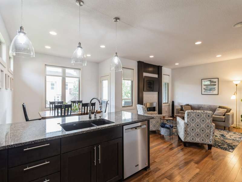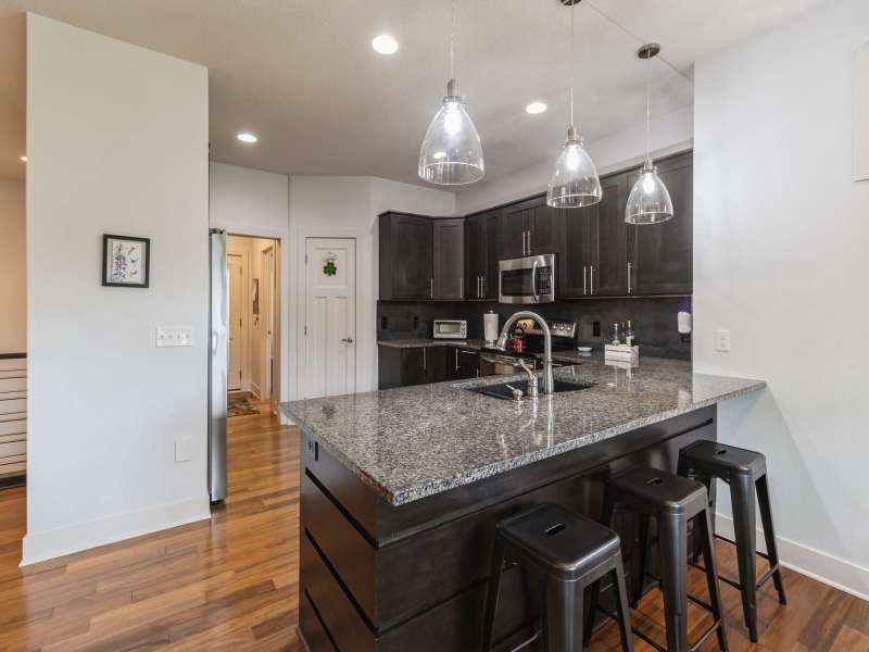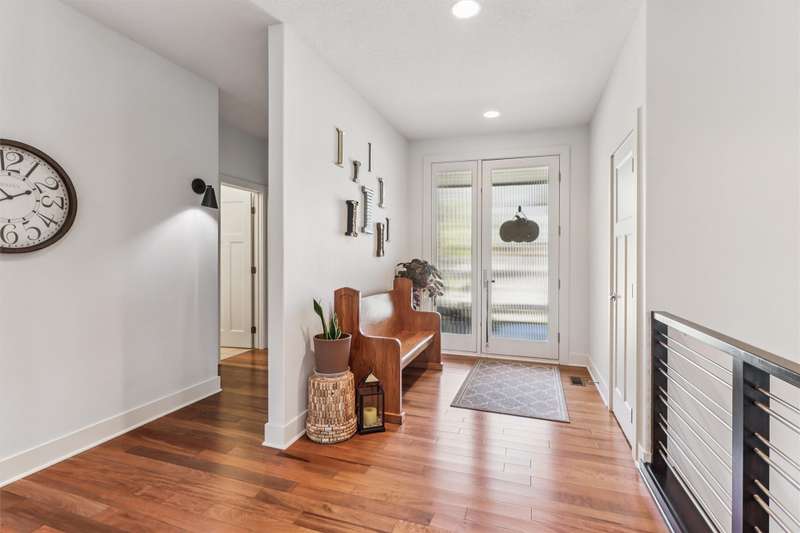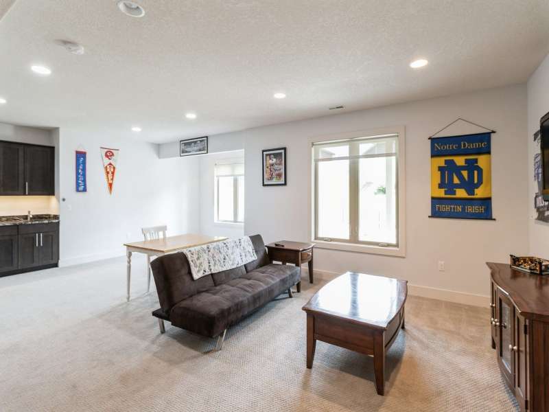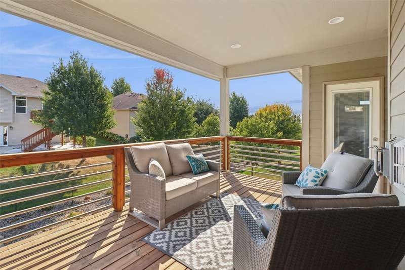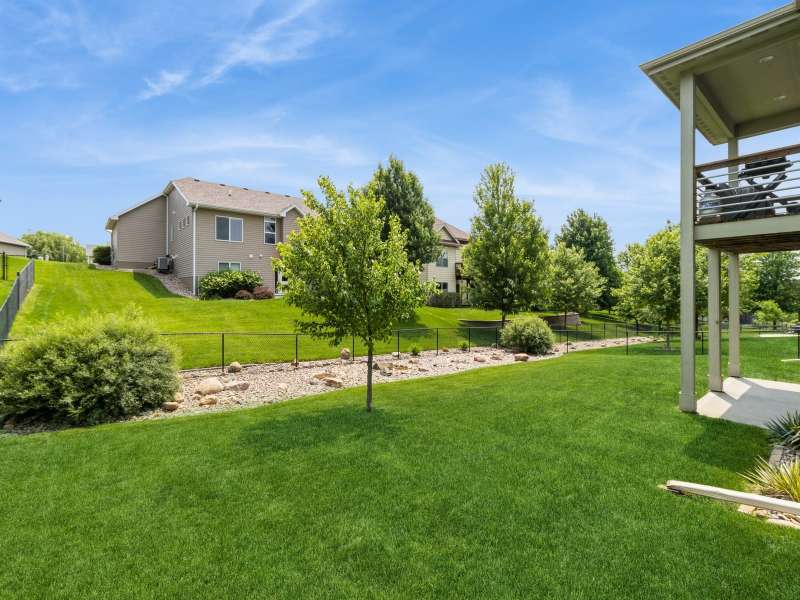 What a Beautiful walkout ranch with an enjoyable east side backyard and covered deck!! Built by Trinity Homes, youll notice the beautiful touches and design right away! Features include a Peruvian tiger wood hardwood floor, a very nice sized kitchen with walk-in pantry, and a wonderful drop zone with lockers and laundry room. The primary suite is really spacious and has a tiled shower and tub. With an inviting entry, the lower level offers a wet bar, is wired for theatre, has ample recreational space, 2 additional bedrooms and a full bath and lots of storage! The garage has a heater, the floors are epoxied and the property is preplumbed for irrigation and central vac! This is a great price!