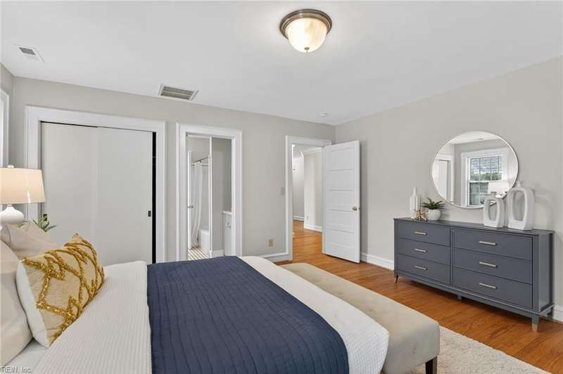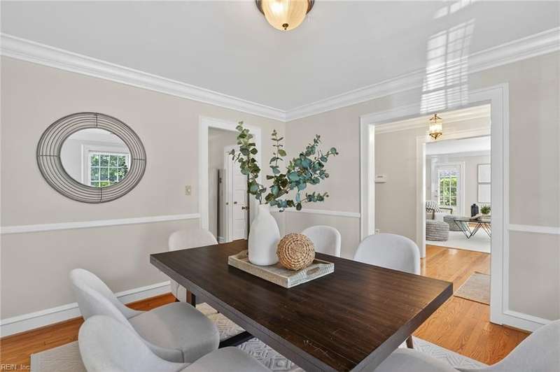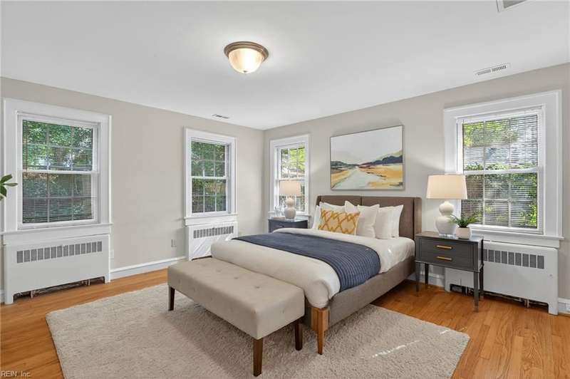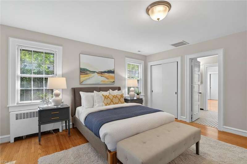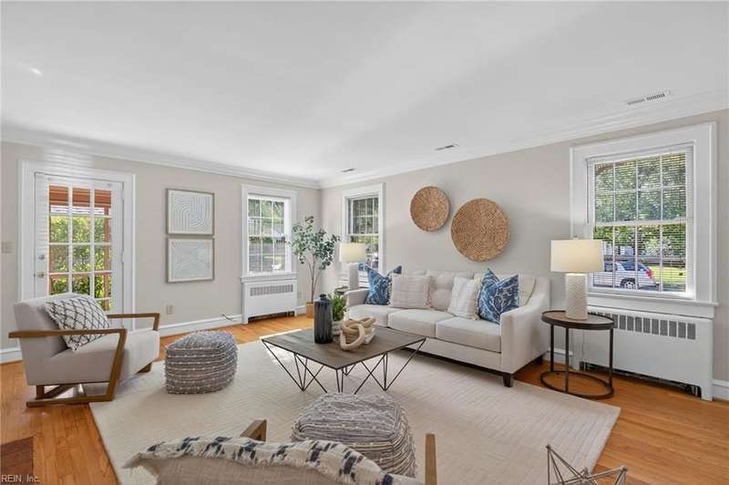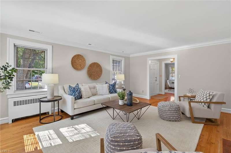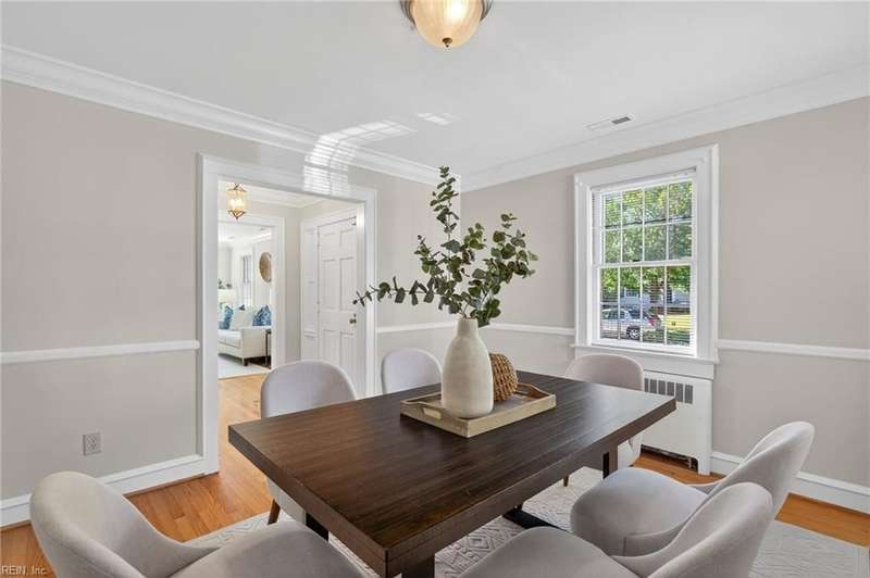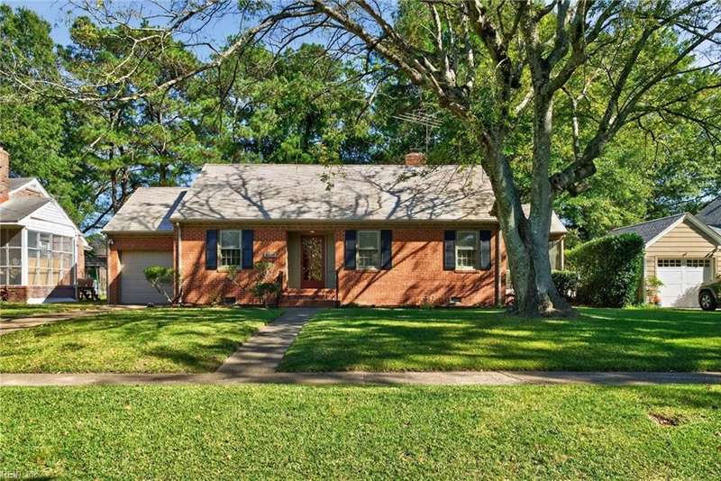 Beautifully maintained, all-brick, Cape Cod-style ranch in Larchmont w/welcoming foyer, spacious LR w/FP, formal DR, functional kitchen w/pantry, Dutch door & direct access to back yard/garage. The 1st floor primary BR incl. private bath, while 2 addl. generously sized BRs & 2nd full hall bath provide flexibility for family/guests/home office. Addl. highlights incl. beautiful hardwood floors, fresh interior & exterior paint, gorgeous moldings, cedar closet & walk-in attic w/gorgeous stairs in place offering ample storage/room for potential expansion. Gas water heater (2011), gas boiler (2014) & central air (2011) make this home efficient & functional. Enjoy outdoor living from the screened-in porch, and the private, fenced backyard. The home also feat. attached 1-car garage w/supplemental fridge & washer, & extended driveway providing ample off-street parking. No flood insurance required.