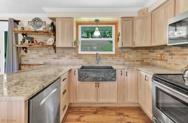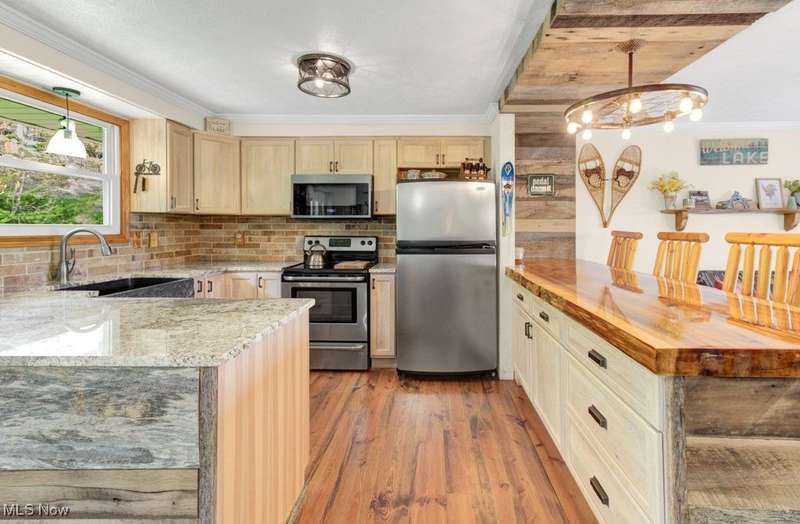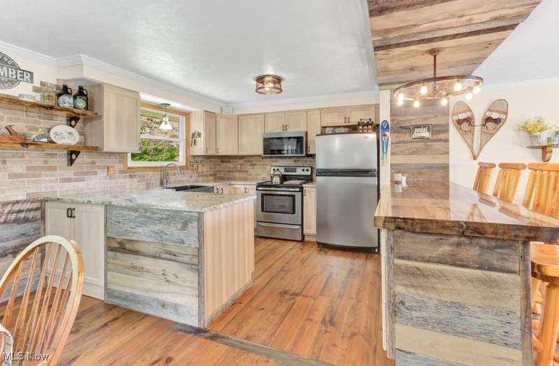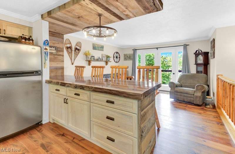 This beautifully updated raised ranch home is a true gem at Lake Mohawk. Panoramic lake views from both levels and custom features throughout. Enjoy outdoor living at its finest with new decks featuring sleek wire railings, fresh landscaping, and a backyard patio perfect for entertaining. The expansive lot extends to Iroquois Trail and includes a second driveway?ideal for boat storage or extra parking. Inside, be wowed by thoughtful craftsmanship and custom touches, including a one-of-a-kind live edge staircase that adds charm and character. The lower level offers a cozy living area, half bath with Corian countertops, and laundry space. The main level boasts an open floor plan with breathtaking lake views, real hardwood floors, and a living area that opens to the upper deck. The kitchen is a chef's dream with granite countertops, custom cabinetry, and a gorgeous live edge bar. Two bedrooms on the main level include a spacious primary suite with private deck access, a large walk-in closet, and a beautifully appointed full bath with granite counters. A one-car garage rounds out this exceptional property. Enjoy all that the private, gated community of Lake Mohawk has to offer, including a 500-acre unlimited horsepower lake, three scenic beaches, an executive 9-hole golf course, tennis & pickleball courts, and so much more!