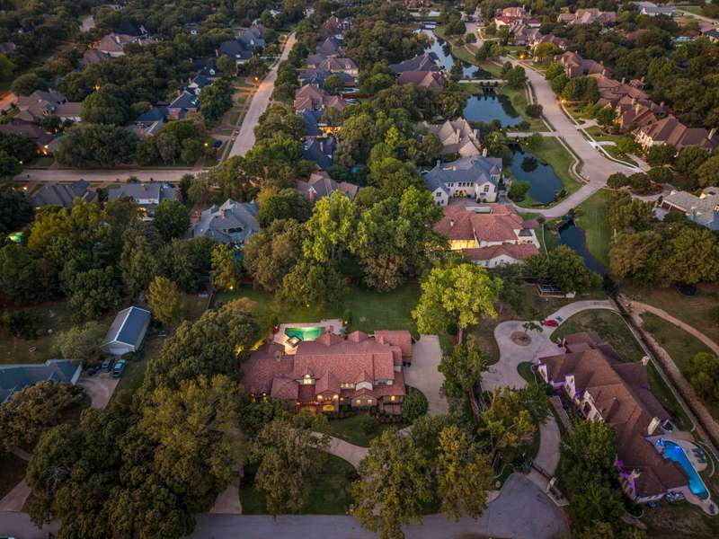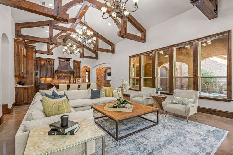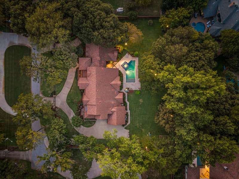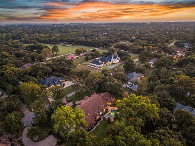Tucked away on a quiet cul-de-sac, this stunning Stewart Custom Home sits gracefully on a full acre surrounded by breathtaking mature trees, offering privacy and serenity in the heart of Colleyville. The first floor showcases 3 spacious bedrooms, including a secondary suite that lives like a second master along with a private office and a dedicated media room. The gourmet kitchen is the heart of the home, featuring Wolf and Sub-Zero appliances, a large island and seamless flow into the family room with its warm exposed beams, perfect for everyday living and effortless entertaining. Upstairs, 2 ensuite bedrooms are complemented by a generous game room and a dedicated exercise room, ideal for family living and guests alike. Step outside to your private backyard retreat: an oversized lawn, covered patio with grilling station, raised spa and sparkling pool, all set against the lush backdrop of a private irrigation well. A covered living space with fireplace and a seamless glass view into the great room creates the perfect setting for year-round entertainingThe property also includes a spacious four-car garage with custom cabinetry, providing incredible storage and function.