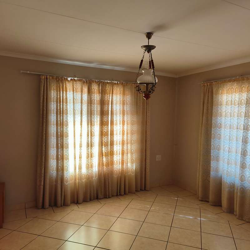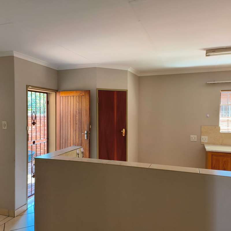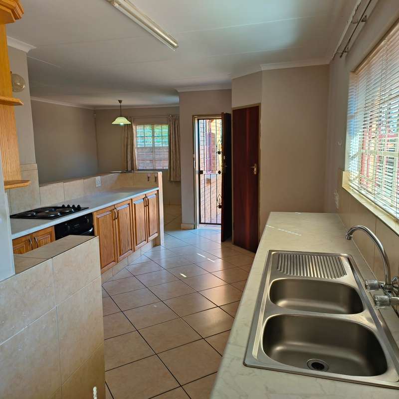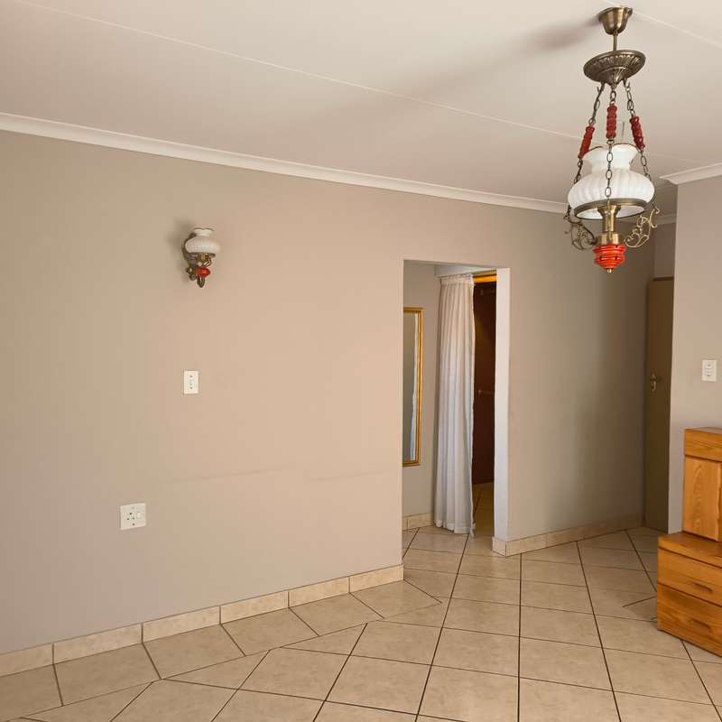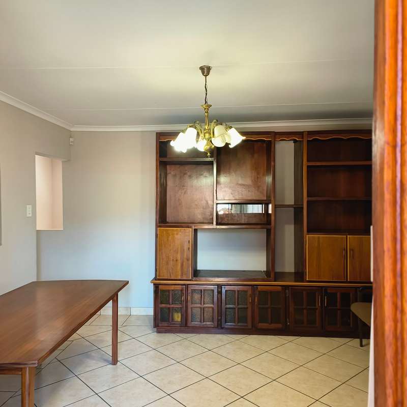 YOU ASKED FOR IT!! Spacious and very neat low maintenance property situated on a corner stand in a sought-after area of Bronkhorstspruit and not far from center of town. The home is perfect for retirement purposes with 3 bedrooms, all with built-in cupboards, 2 bathrooms, one en-suite with a bath and dressing room, a separate lounge, dining room and a large kitchen with ample cupboards, a pantry and scullery, running into a double lockable garage with steel doors. A built-in cupboard for additional packing space in the passage leading to the bedrooms. A a small garden to maintain, paving all around the house. For added protection and security , the property has an alarm system connected to a local security company and outside beams. LOOK NO FURTHER!!