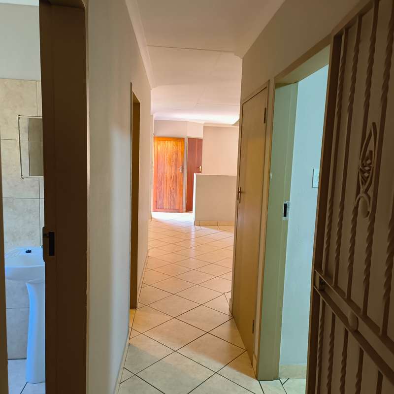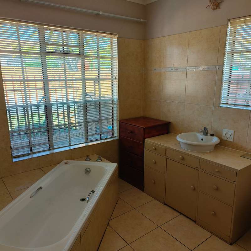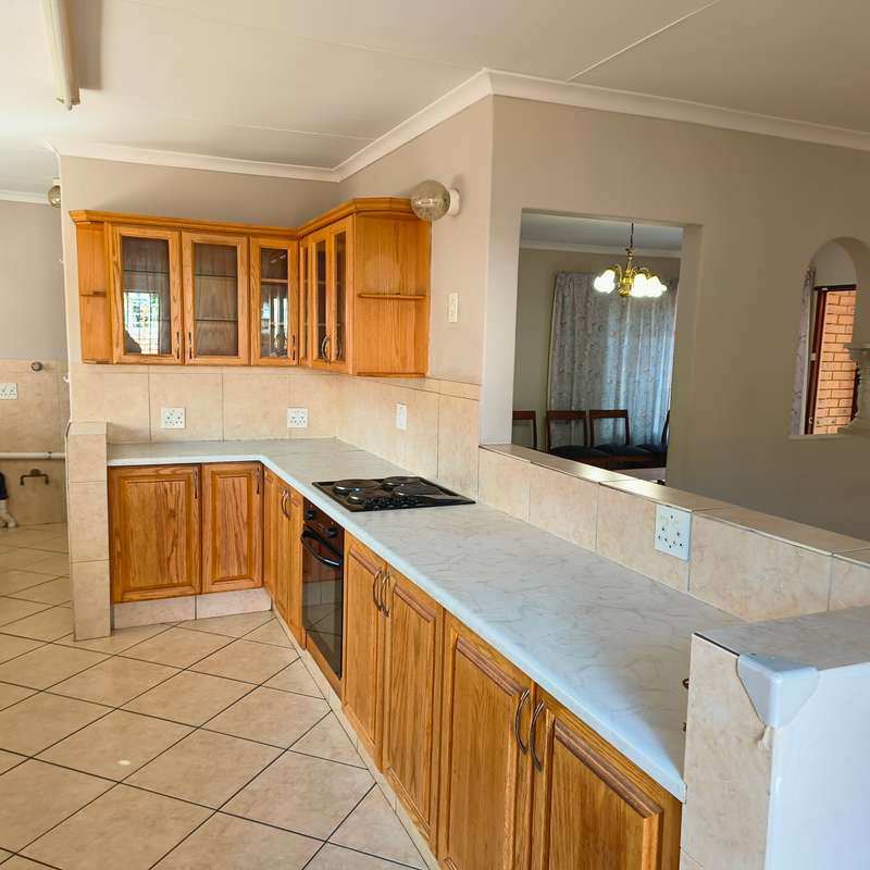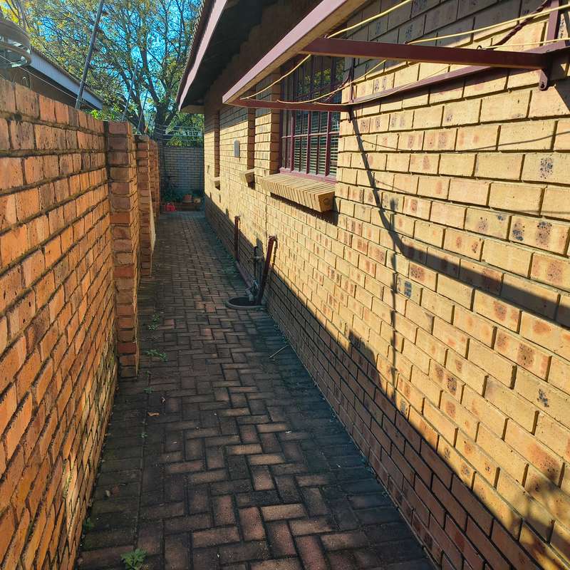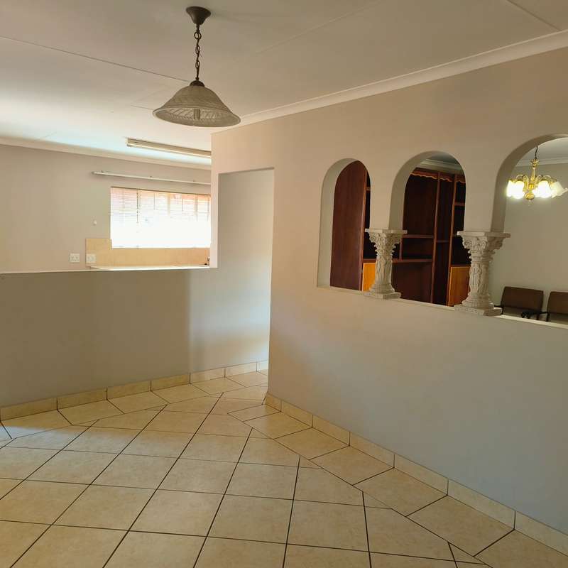 YOU ASKED FOR IT!! Spacious and very neat low maintenance property situated on a corner stand in a sought-after area of Bronkhorstspruit and not far from center of town. The home is perfect for retirement purposes with 3 bedrooms, all with built-in cupboards, 2 bathrooms, one en-suite with a bath and dressing room, a separate lounge, dining room and a large kitchen with ample cupboards, a pantry and scullery, running into a double lockable garage with steel doors. A built-in cupboard for additional packing space in the passage leading to the bedrooms. A a small garden to maintain, paving all around the house. For added protection and security , the property has an alarm system connected to a local security company and outside beams. LOOK NO FURTHER!!