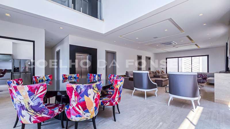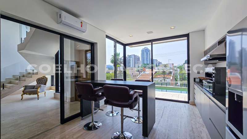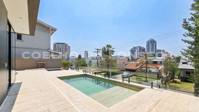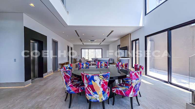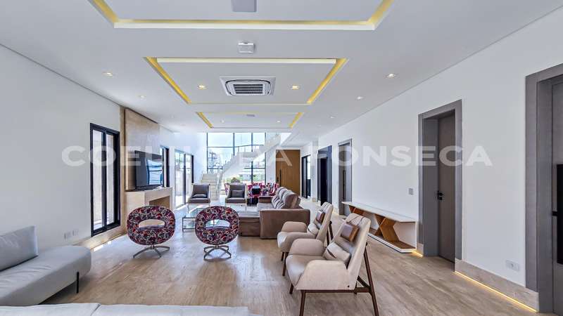 Projeto moderno e sofisticado, residência de altíssimo padrão. Mármore na ala social toda, living para 3 ambientes sendo um com lareira, home theater.àrea gourmet integrada à piscina, elevador, fogo de châo, jacuzie 2 lavandeirias. Piso superior todo em madeira, copinha, ropeiro, 4 suítes com closet, sendo a master com banheiro senhor e senhora. Piso terreo, garagem para 4 carros,
