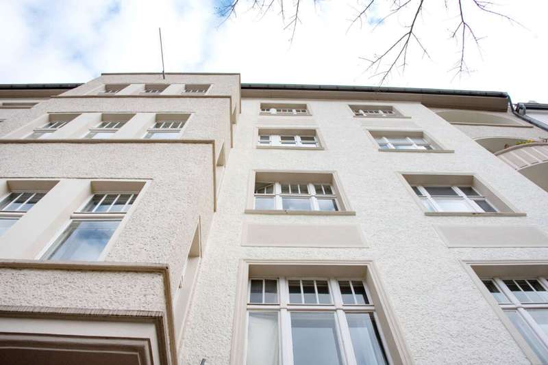 The beautiful old building from 1904 consists of 41 residential and three commercial units, which are distributed in the front building and two side wings on a total of 5 floors. In the light-filled rented units, efficient floor plans ensure attractive living quality. The 1- to 4-room apartments with living areas between approx. 29 m² and 119 m² offer sufficient space for singles as well as couples and families. Some of the apartments are equipped with a balcony or loggia and 2 residential units on the first floor each have a private garden.