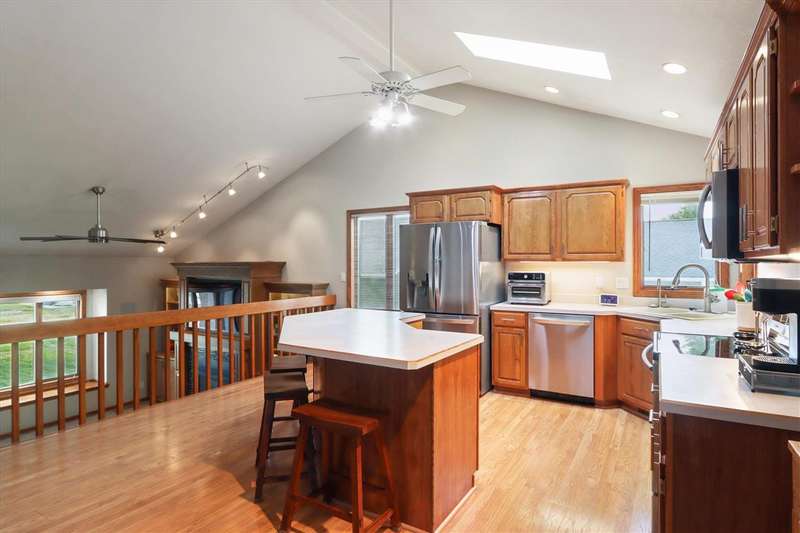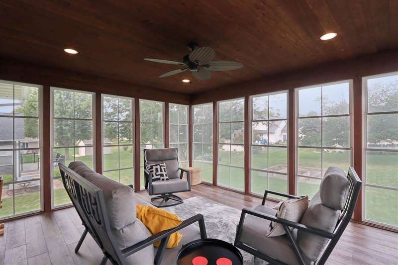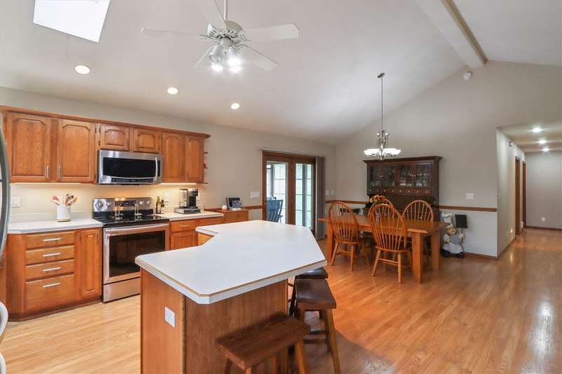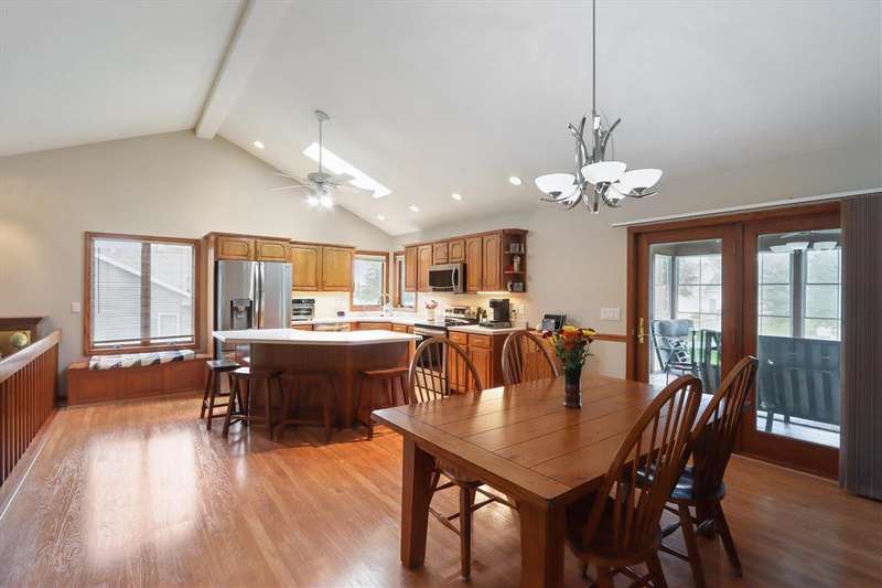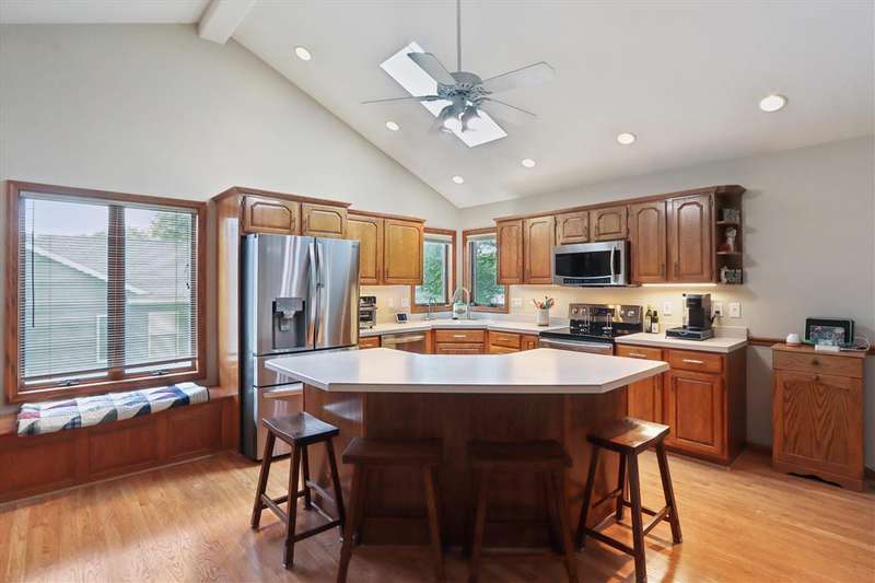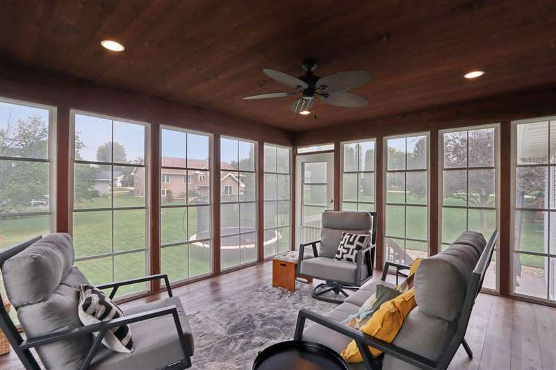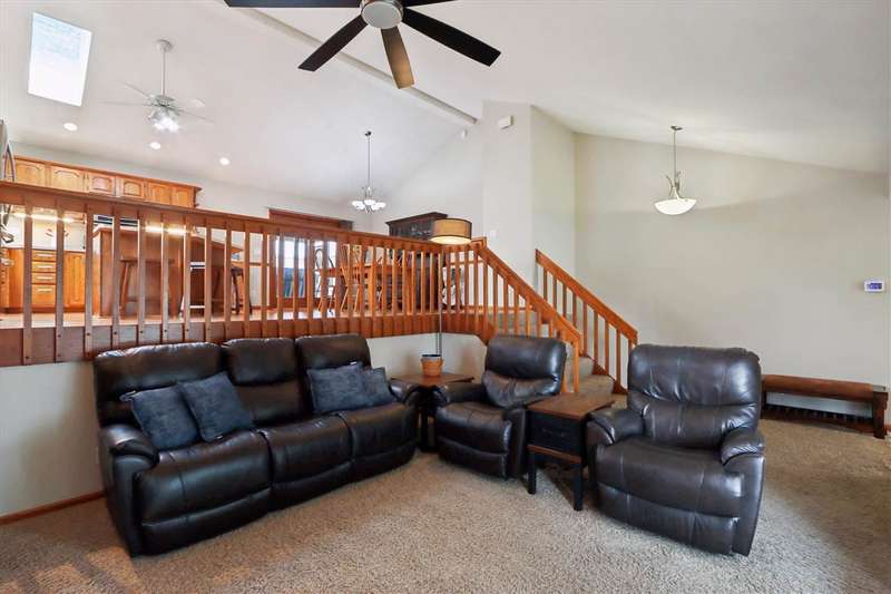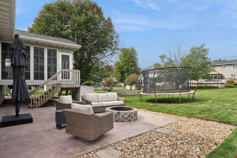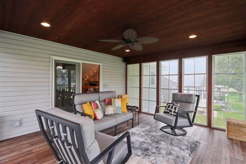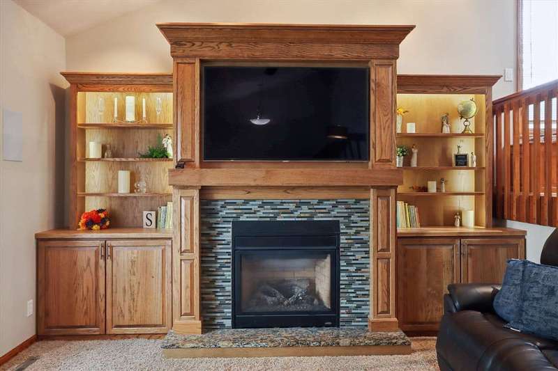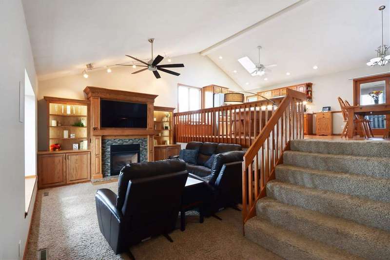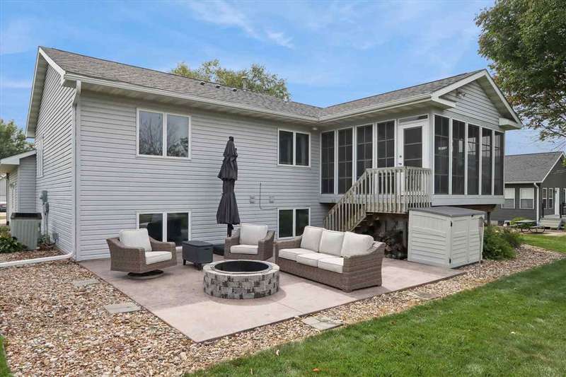 Stunning 4-Bedroom, 3-Bath Home in Walford Experience comfort and style in this beautiful 4-bedroom, 3-bathroom home with an attached oversized 2-car garage, located in the heart of Walford. The main level features a remodeled great room with custom-built cabinets, an entertainment center, and a cozy gas fireplace. The lower-level family room also includes a gas fireplace, perfect for relaxing evenings. Enjoy year-round living with a spacious 3-season porch and outdoor entertaining on the custom stamped patio with fire pit. A driveway addition provides extra parking, and the garage includes built-in storage for convenience. The kitchen is equipped with stainless steel appliances, a kitchen island, sit-up bar, and elegant hardwood flooring. The primary suite boasts a luxurious ensuite bathroom, walk-in closet, and integrated sound system, which extends throughout the great room and porch. Additional features include: New roof and skylight (2020). Laundry room with wash sink. Storage room with hand wash sink and garage walk-out. Utility room with owner-owned water softener, iron filter, and extra storage. DMP home security system. Govee exterior holiday lights and front sconces. This home combines thoughtful upgrades with practical amenities, offering an inviting space for family and entertaining alike.