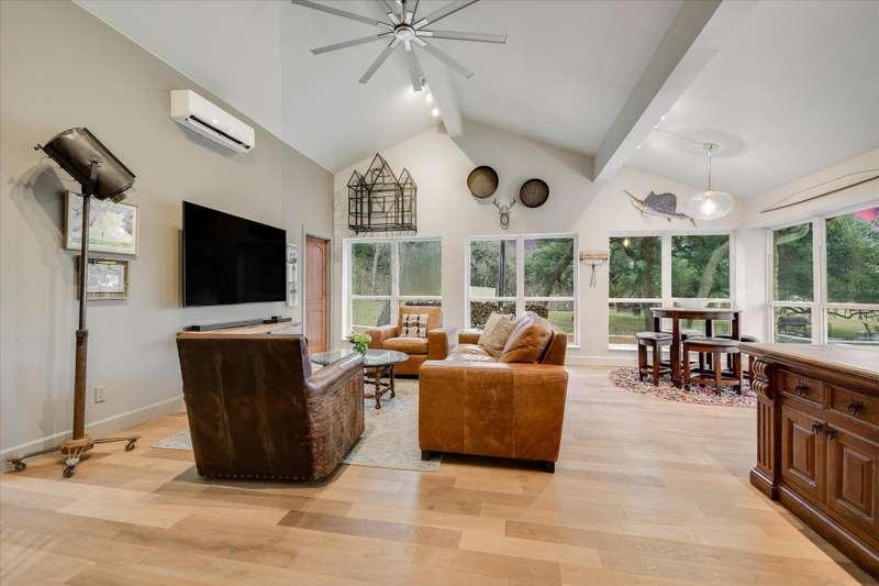 Welcome to River's Edge Retreat, spanning over 3 magnificent acres along one of River Road's most coveted stretches. This exceptional residence offers direct access to the crystal-clear Blanco River, crowned by a private bluff showcasing breathtaking Hill Country vistas that captivate at every glance. Meticulously positioned to embrace its natural surroundings, the property is graced by a majestic forest of cypress, pecan, and old-growth oak trees, creating a natural canopy that provides cool shade and unparalleled privacy throughout the grounds. Each thoughtfully curated vantage point, whether from the riverside gathering spaces, secluded picnic areas, or the dramatic bluff overlook, invites you to immerse yourself in the property's natural splendor. This residence masterfully balances rustic charm with refined modern comforts, offering 4 bedrooms and 4 bathrooms in a warm, inviting layout that caters to both everyday living and weekend entertaining. Expansive windows frame the stunning natural surroundings like living artwork, while thoughtfully designed outdoor spaces create seamless transitions between interior comfort and the property's natural beauty, perfect for both grand gatherings and intimate moments of reflection. This rare fusion of riverfront access, sweeping Hill Country views, and absolute privacy positions 1920 River Road as more than just a residence--it's a gateway to Wimberley's coveted lifestyle, where nature and luxury coexist in perfect harmony. Whether envisioned as a primary residence, a sophisticated retreat, or a legacy property to be cherished across generations, this extraordinary haven stands ready to become the backdrop for life's most memorable moments. Don't miss your opportunity to own a piece of Wimberley's most coveted waterfront property. This property is available for purchase on its own or in combination with the 1-acre parcel next door.