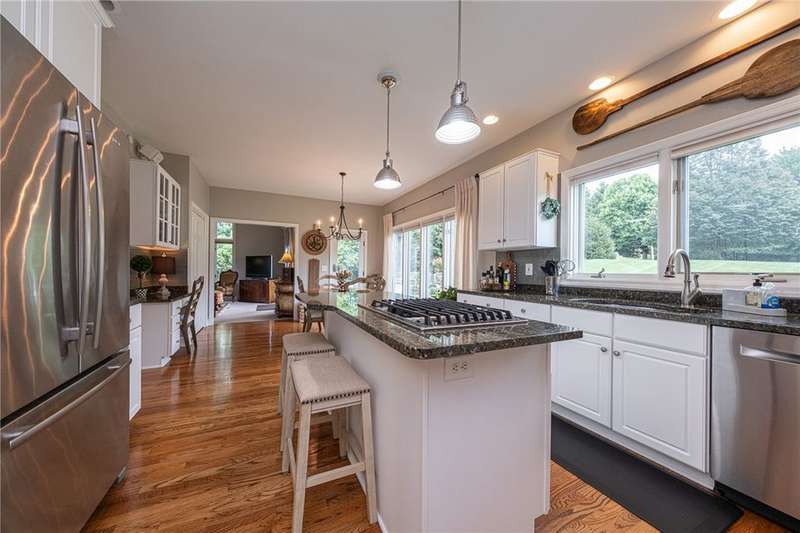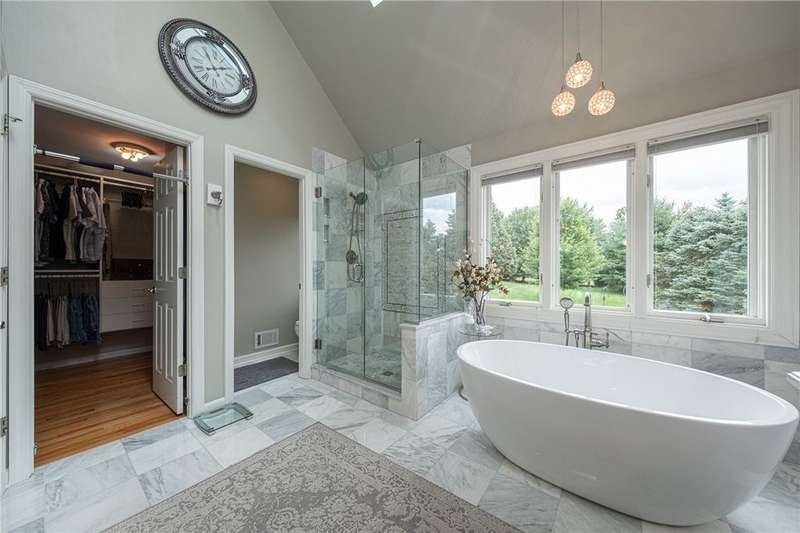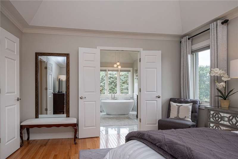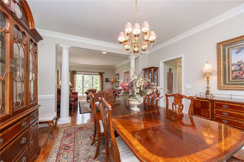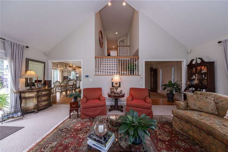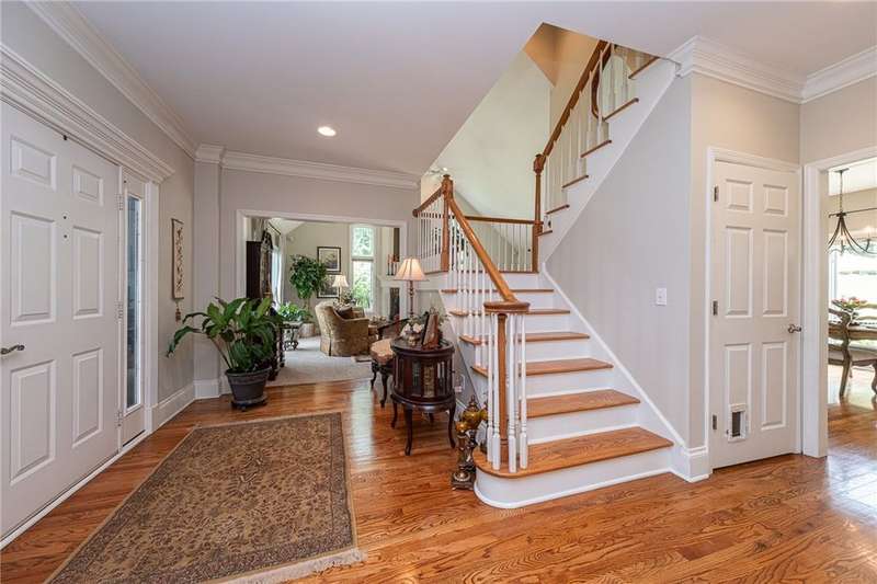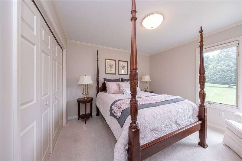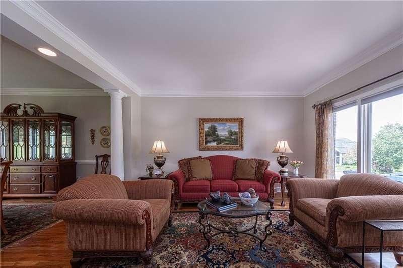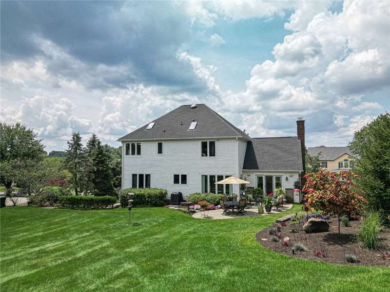 WELCOME HOME to this impeccably maintained custom house on a beautiful private lot in the prestigious Treesdale golf course community. Thoughtfully designed floor plan offers timeless elegance & functionality. Custom moldings, attractive hardwood flooring, & freshly painted neutral colors throughout. Chef's kitchen boasts custom cabinets, newer appliances, granite counters, island & large dining area that overlooks the beautiful private patio. Open living & dining rm w/custom moldings. Private office w/custom shelves. Spacious family rm w/cathedral ceiling, & custom fireplace flanked by windows. 4 spacious bedrooms upstairs(2 w/volume ceilings). Primary suite w/tray ceiling.Updated spa like bath boasts stunning shower, stand alone tub & more. Spacious owner's custom closet! Finished lower level features new Flotex flooring & paint, wet bar, full bath & storage. Casement windows w/new glass, HVAC, roof, int & ext paint, prof. landscaping, built in back-up power system & much more!