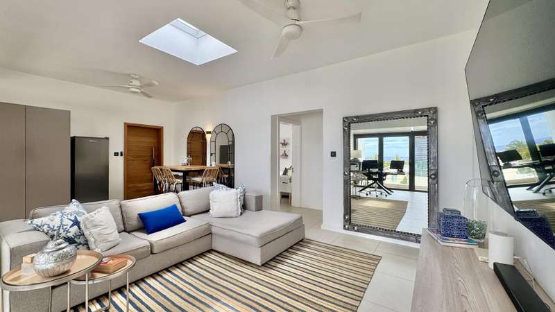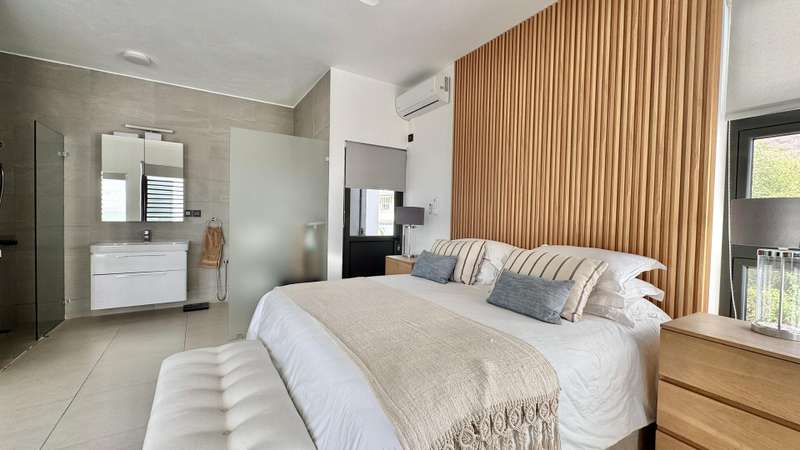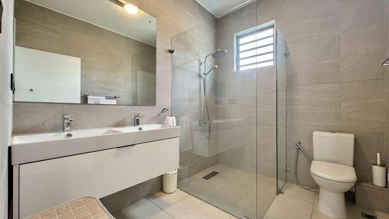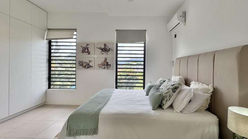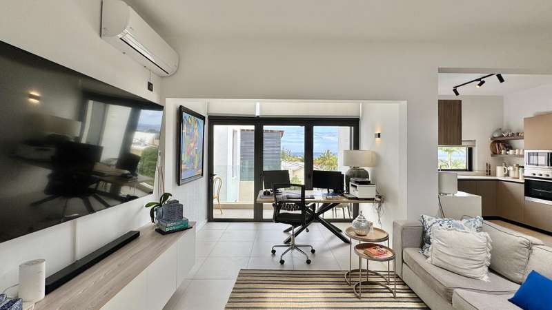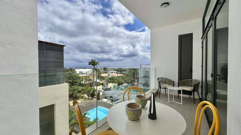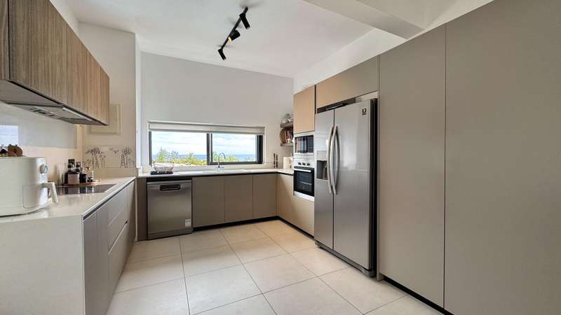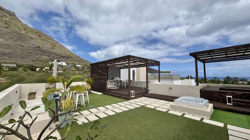 Crowning a contemporary residence in the heart of Tamarin, this penthouse apartment combines architectural clarity, natural light, and the essence of west coast living. With 160 m² of refined interiors, the home offers both elevated privacy and exclusive access to a private rooftop terrace—complete with jacuzzi and sweeping mountain views. Inside, the layout includes three spacious bedrooms and two bathrooms, thoughtfully designed for comfort and flow. The open-plan living and dining area connects to a sleek American kitchen, fully equipped with quality appliances and finishes. Wide sliding doors open onto a shaded balcony—just the spot for a morning coffee or evening aperitif at a small table for two. Residents enjoy the security of a gated complex with landscaped common areas, a shared swimming pool, outdoor shower, lift access, laundry room, air conditioning throughout, and covered private parking. Well-positioned near international schools, shops, golf courses, and clinics, this penthouse delivers convenience without compromising tranquility. Accessible to foreigners. Contact DIANE WATKINS – Property Consult for a private viewing!