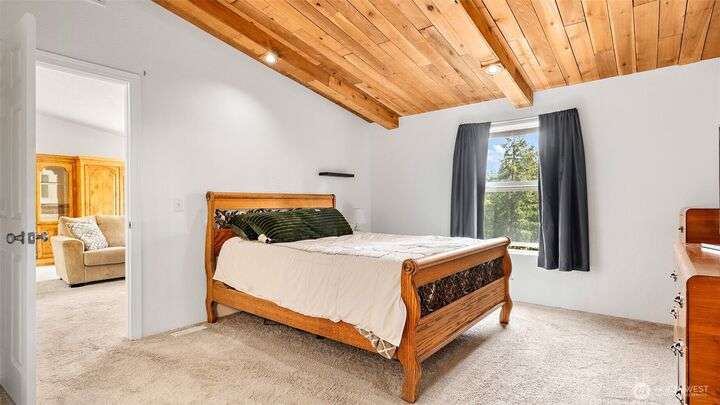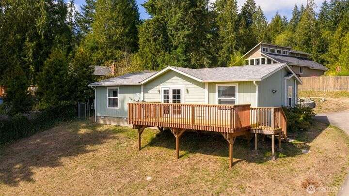 Located in the waterfront community of Rustlewood,a 3 bedroom, 1 & 3/4 bath home that has so much to offer along w/all of the neighborhood amenities!French doors in the living room take you to a deck w/a view;Enjoy the everchanging scenery as nature does its thing. The home is neat & clean w/split floor plan - primary suite on one end & guest bedrooms on other end. Tongue & groove ceiling in primary bedroom adds a touch of personality & also offers an ensuite bath.Vaulted ceilings, rounded corners,large kitchen w/lots of counter and cupboard space, dining nook w/built in china cabinet & mud/utility room off the back entry.Rustlewood itself brings waterfront fun- beach access & picnic area. EASY access to HWY 3 & areas beyond.