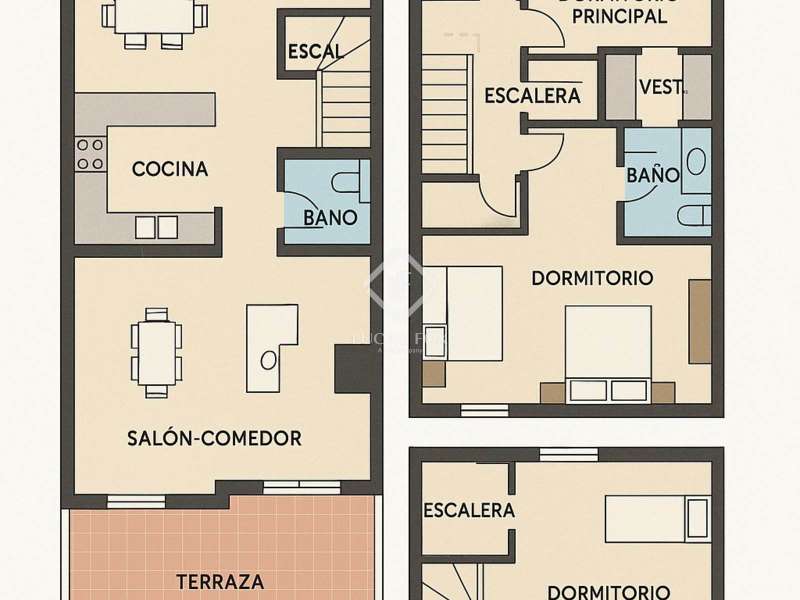 Lucas Fox is pleased to present this beautiful 260 m² designer home on a 650 m² plot in the residential area of La Floresta, Sant Cugat del Vallès. We enter through the first floor, where we find a beautiful main bedroom with its private full bathroom and access to a large southerly aspect terrace with views of Collserola. On the ground floor , we find the day area, with a beautiful, fully equipped kitchen-diner with access to the garden and a large living-dining room with a fireplace and access to two terraces. There is also a bathroom to add comfort to this floor. On the top floor we have the night area, which consists of three double bedrooms with built-in wardrobes and a full bathroom . Don't hesitate to visit it.