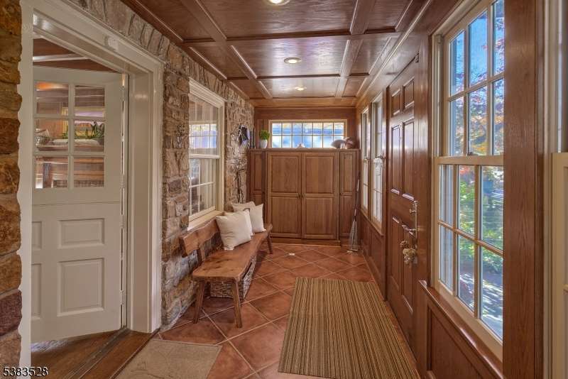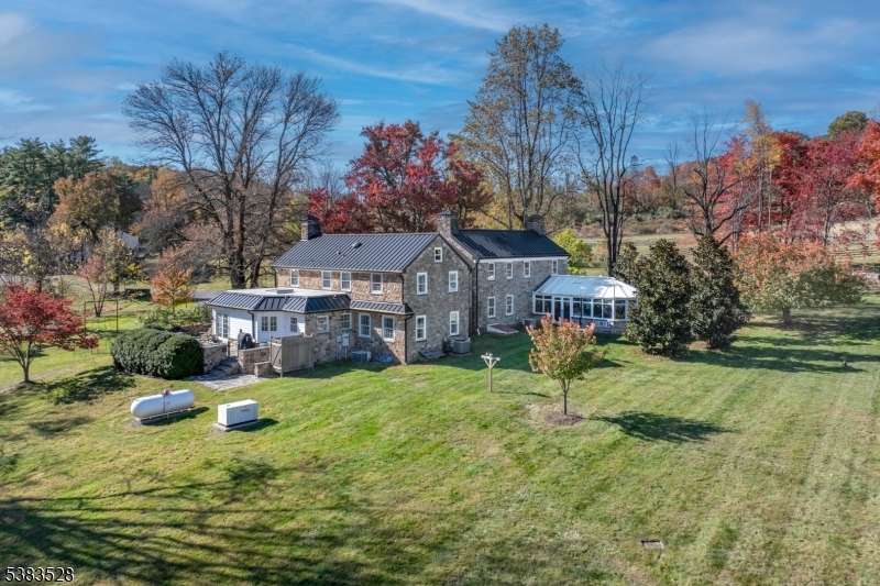 Nestled on 55 stunning acres in bucolic Pennington, minutes from Princeton this remarkable 4-bedroom, 5-bathroom estate masterfully blends historic charm with thoughtful modern updates. A long, winding driveway leads past fenced pastures. At the end of the drive sits a beautifully preserved stone farmhouse, originally built in the 1700s, accompanied by a historic stone spring house, stone patios, a fenced cutting garden, manicured grounds, and specimen trees. A detached garage and fenced vegetable garden, berry patch, and apple orchard enhance the property's appeal. Inside, the home is filled with warmth and detail. A recently updated mudroom with radiant heat welcomes you, leading to a chef's kitchen with center island that opens to a cozy family room with a wood-burning fireplace. A cozy office with fireplace provides quiet workspace which leads to a tiled glass conservatory and a large screened-in porch with fireplace to offer year-round enjoyment. Upstairs, the layout includes a tranquil primary suite, a second ensuite bedroom, and two additional bedrooms with connecting bath. 3 bathrooms have been updated. 5 wood-burning fireplaces, The grounds also feature wooded trails, & open fields. With privacy, natural beauty, and timeless character, this estate offers a rare opportunity just outside of Princeton.