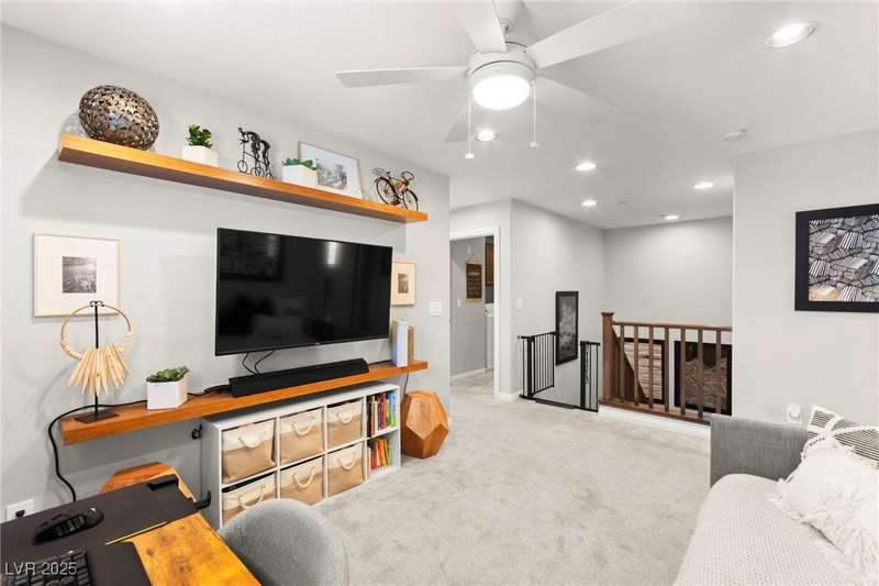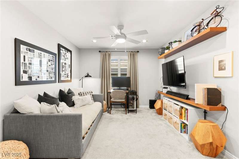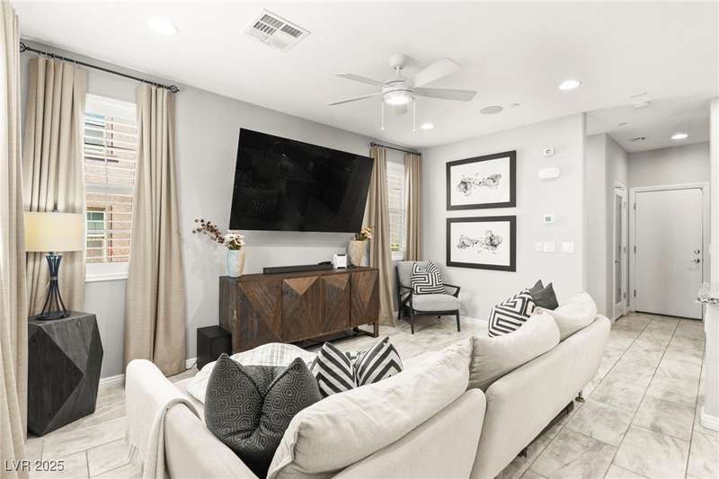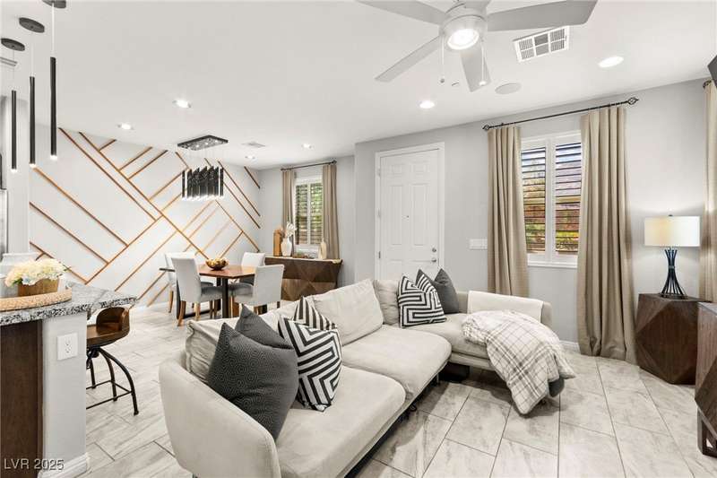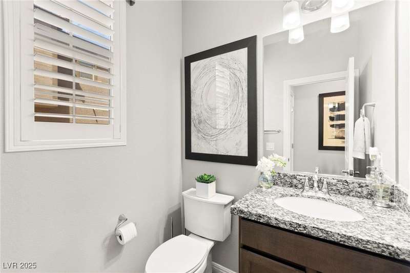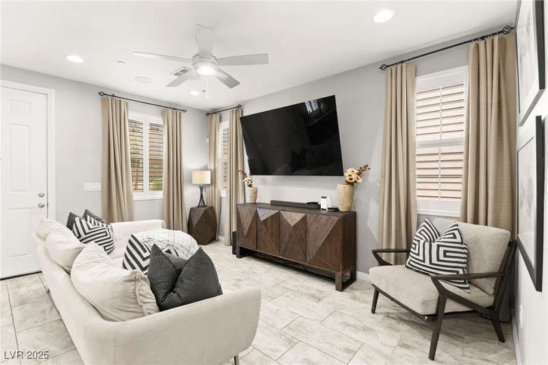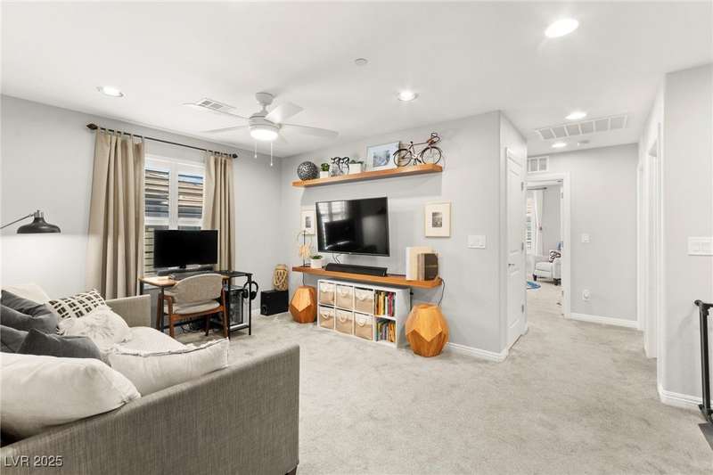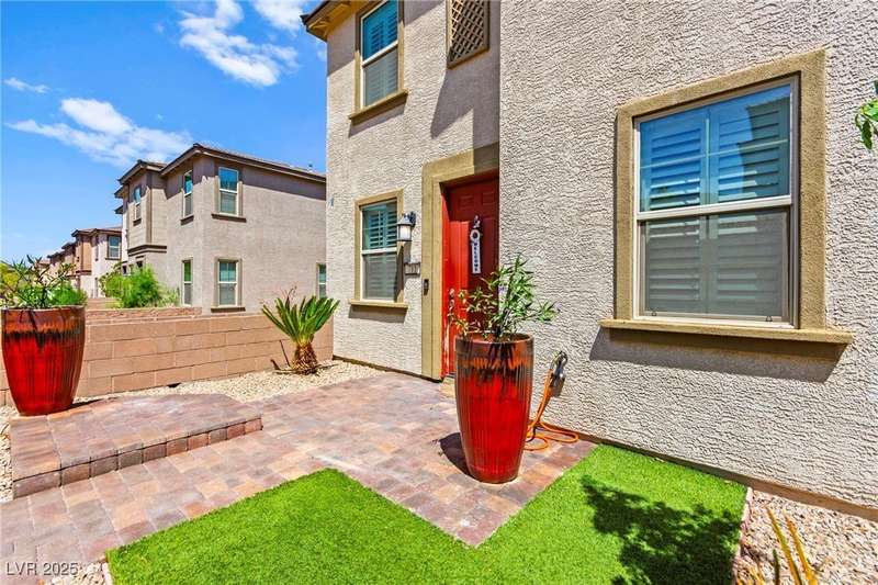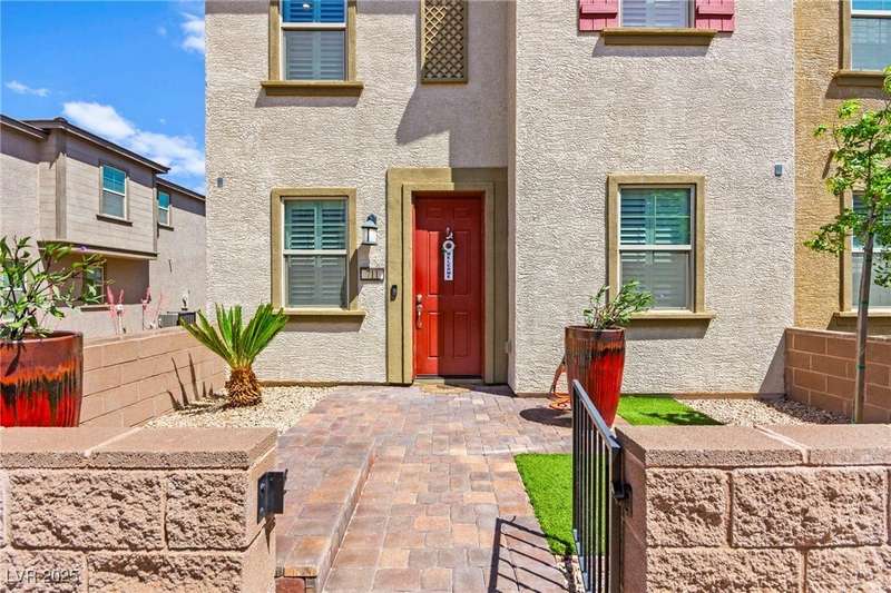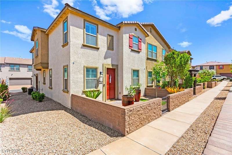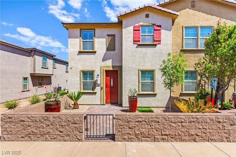 Back on market due to the previous buyer unable to deliver and perform. VERY DESIRABLE VA ASSUMABLE LOAN at 2.5% interest rate. Welcome to one of the most premiere units in the entire gated community! As a former model home, this immaculately maintained 3 bedroom/2.5 bathroom with additional loft/den corner unit is fully loaded with all of the upgrades a new owner can need! The primary bathroom boasts an oversized upgraded shower as well as upgraded tile flooring throughout the home, upgraded thick granite countertops with stylish backsplash, upgraded cabinetry, upgraded stair railings, shutter for all windows throughout, oversized laundry room, epoxy flooring in garage, and built-in speakers. Massive loft upstairs spaciously separates the primary suite from the two additional bedrooms along with the additional bathroom that includes dual sinks for extra space and easy to share. Come tour this former model home that exudes pride in ownership today!