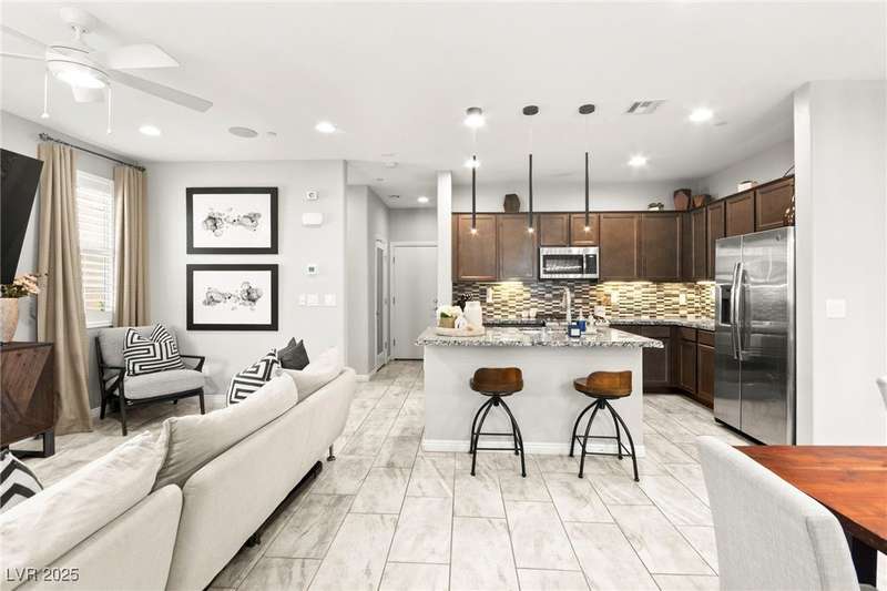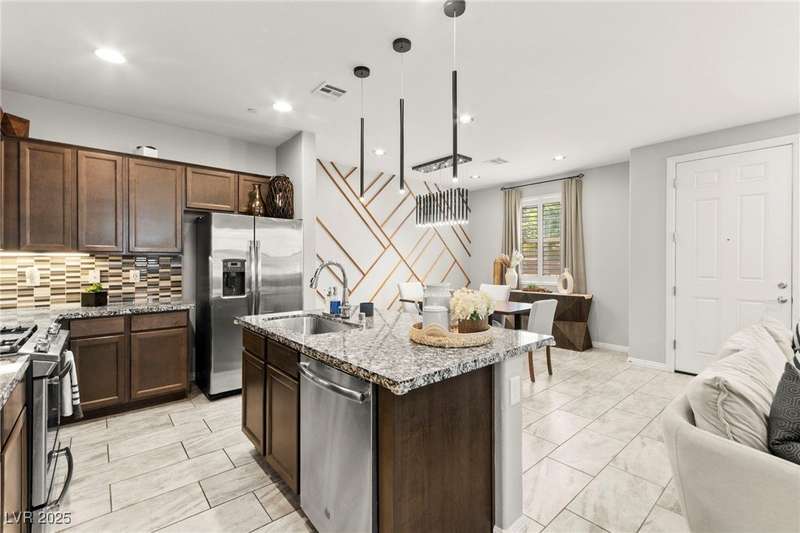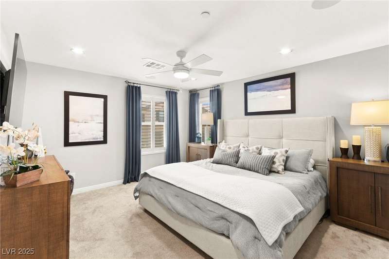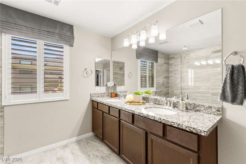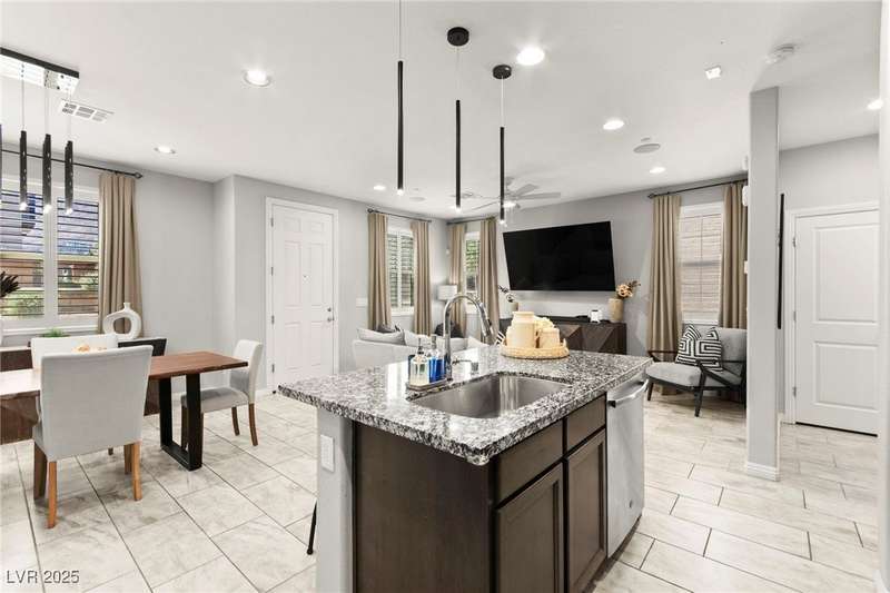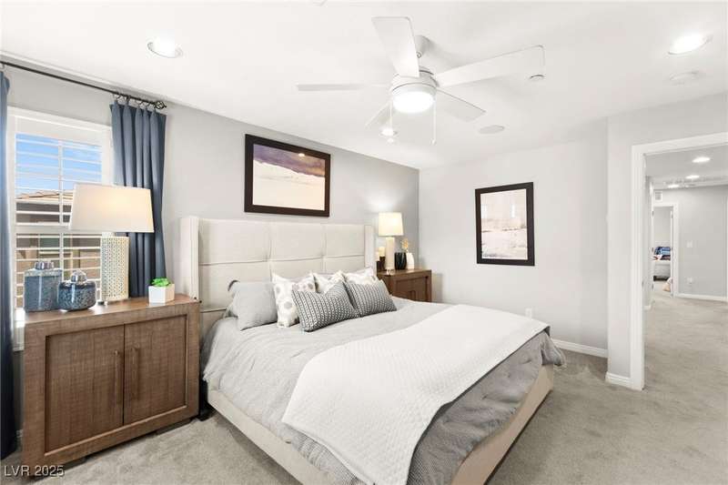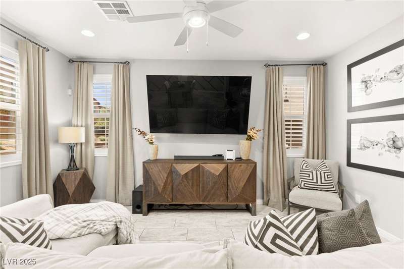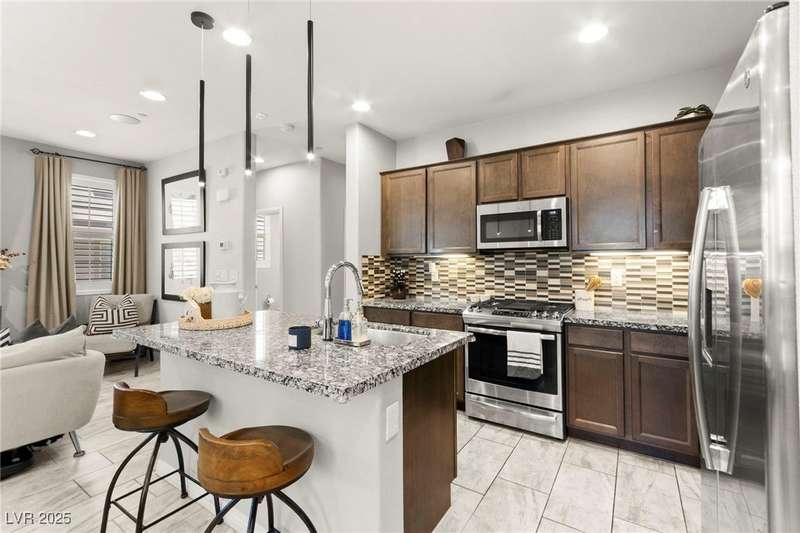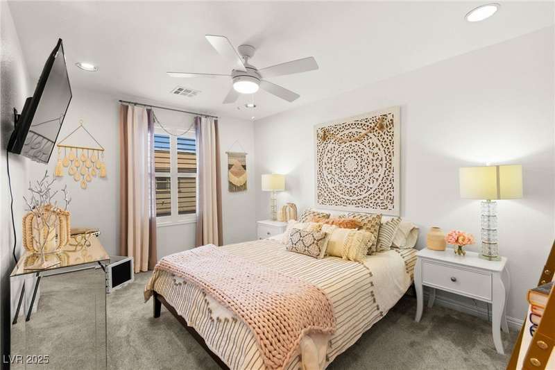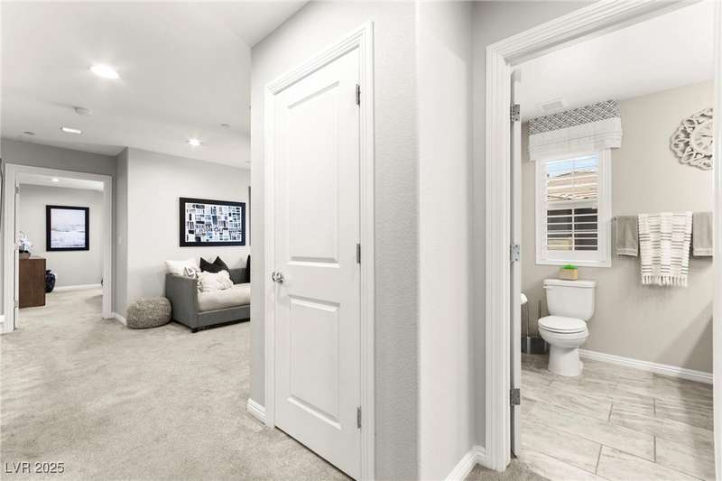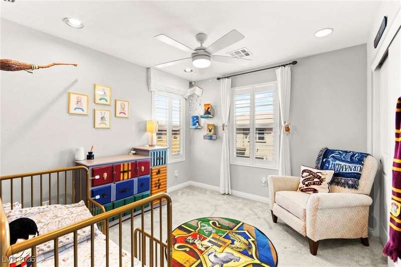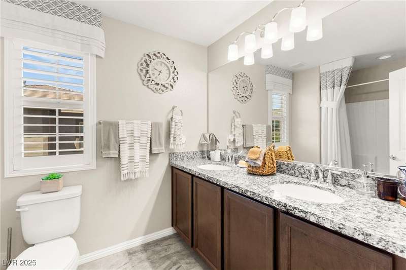 Back on market due to the previous buyer unable to deliver and perform. VERY DESIRABLE VA ASSUMABLE LOAN at 2.5% interest rate. Welcome to one of the most premiere units in the entire gated community! As a former model home, this immaculately maintained 3 bedroom/2.5 bathroom with additional loft/den corner unit is fully loaded with all of the upgrades a new owner can need! The primary bathroom boasts an oversized upgraded shower as well as upgraded tile flooring throughout the home, upgraded thick granite countertops with stylish backsplash, upgraded cabinetry, upgraded stair railings, shutter for all windows throughout, oversized laundry room, epoxy flooring in garage, and built-in speakers. Massive loft upstairs spaciously separates the primary suite from the two additional bedrooms along with the additional bathroom that includes dual sinks for extra space and easy to share. Come tour this former model home that exudes pride in ownership today!