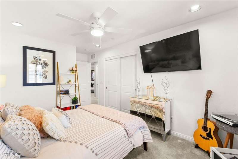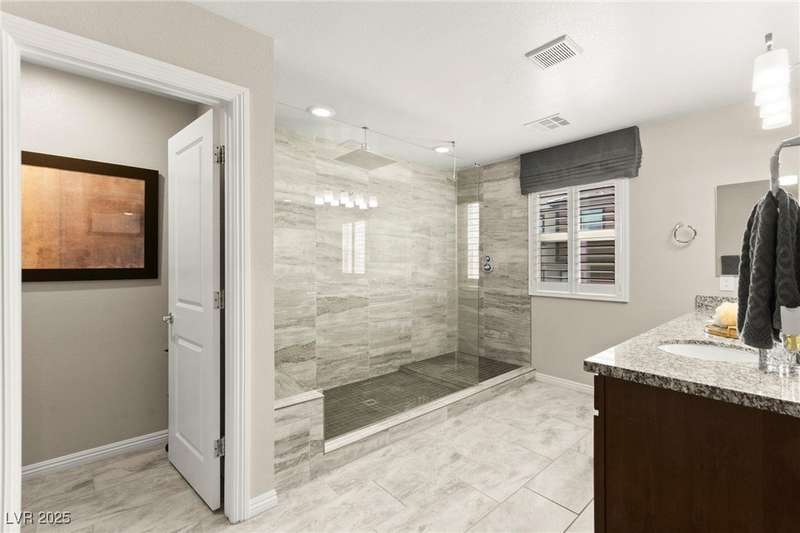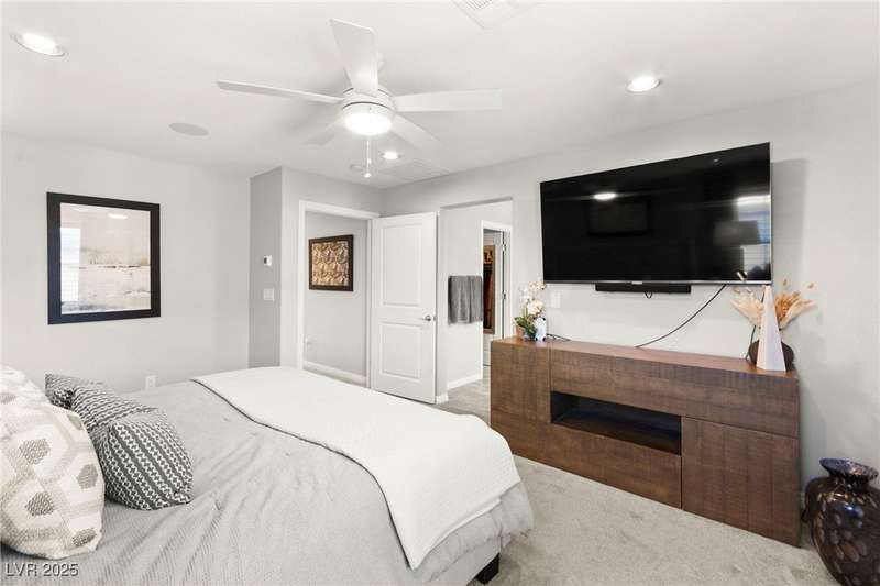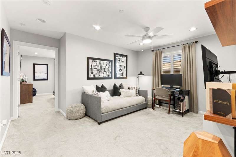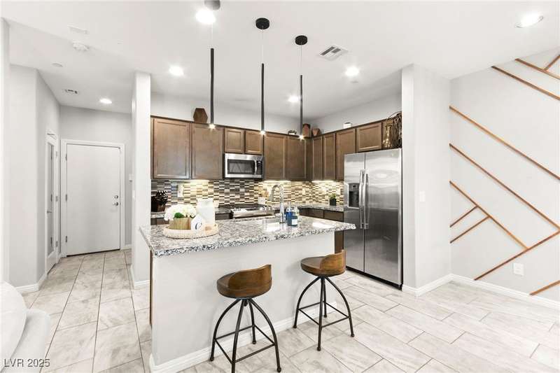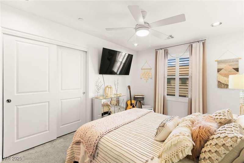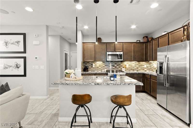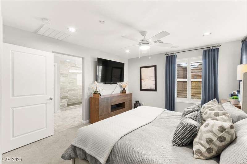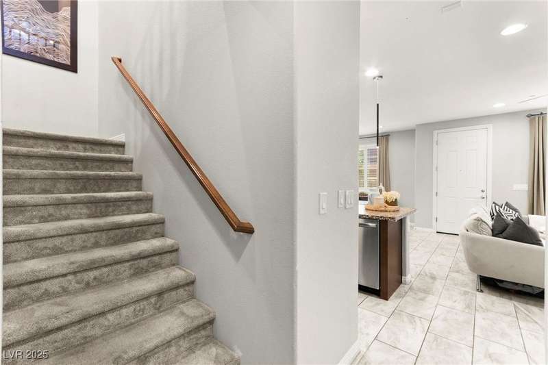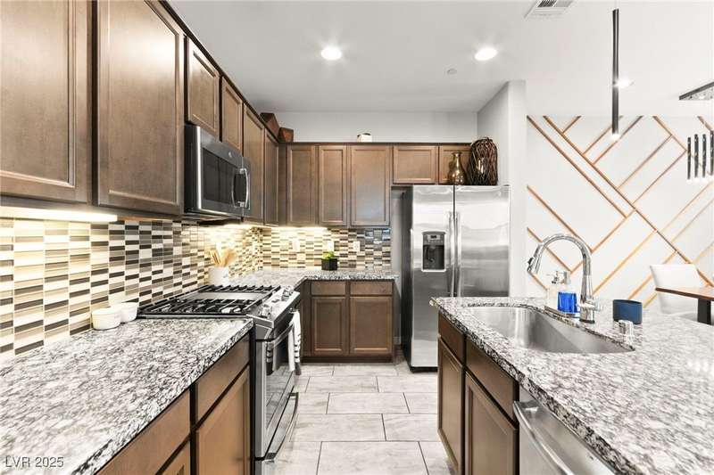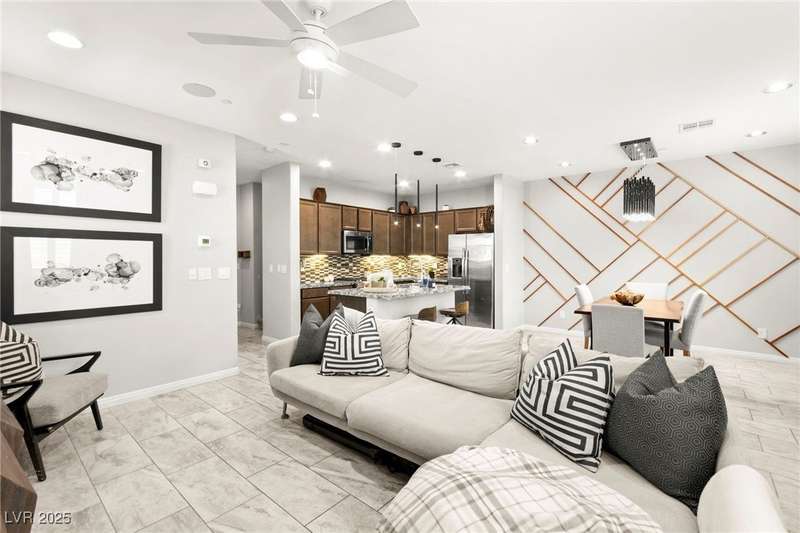 Back on market due to the previous buyer unable to deliver and perform. VERY DESIRABLE VA ASSUMABLE LOAN at 2.5% interest rate. Welcome to one of the most premiere units in the entire gated community! As a former model home, this immaculately maintained 3 bedroom/2.5 bathroom with additional loft/den corner unit is fully loaded with all of the upgrades a new owner can need! The primary bathroom boasts an oversized upgraded shower as well as upgraded tile flooring throughout the home, upgraded thick granite countertops with stylish backsplash, upgraded cabinetry, upgraded stair railings, shutter for all windows throughout, oversized laundry room, epoxy flooring in garage, and built-in speakers. Massive loft upstairs spaciously separates the primary suite from the two additional bedrooms along with the additional bathroom that includes dual sinks for extra space and easy to share. Come tour this former model home that exudes pride in ownership today!