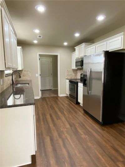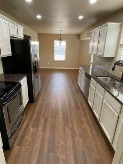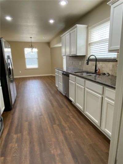 Check out this 3 BR 2 BA 2 CG all brick home featuring an efficient layout with ample closet and storage space. HUGE, fully fenced backyard - perfect for pets, play, or entertaining. Galley kitchen with 3 cm granite countertops, dining area, and utility room with pantry shelving. Primary suite includes a generous walk-in closet and en-suite bath with dual vanities. Enjoy low-maintenance vinyl flooring throughout. Roof replaced Summer 2020. A comfortable and functional home ready for move-in!