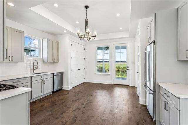This one has a 2/1 rate buy-down option! Newly constructed contemporary cottage tucked away against two dead-end streets at the 40 Arpent Canal in Arabi. Highlights include 10' ceilings throughout, ceiling-to-floor front windows, and lap board accent walls in the living area, as well as a handy custom coat stand at the entry. Kitchen features stainless appliances, subway tile backsplash, extra tall shaker cabinets, and a walk-in pantry. French doors lead to the back patio. The downstairs primary suite includes a spacious walk-in closet, spa-like bath, and separate entrance to the back patio. Upstairs has an extra-large bedroom with a balcony overlooking Bayou Bienvenue - the spot to be for evening sunsets. Outdoor amenities close by include Heights Trailhead and the 9-mile bike path that skirts along the bayou, neighborhood ball fields, Torres Park, and the soon-to-be-completed Chenier's Landing nature trail. Arabi has great schools, top-rated restaurants, and St Bernard Parish Ochsner Hospital is just a few minutes away. Local lenders offer 100% financing on this home through USDA Rural Development and LA State bond programs. A 2/1 rate buy-down is a financing option where the seller or lender pays to temporarily reduce the buyer's mortgage interest rate for the first two years of the loan. Typically, the interest rate is reduced by 2% in the first year and 1% in the second year, returning to the original rate in the third year. This lowers monthly payments initially, making homeownership more affordable during the early years of the mortgage. Owner is also willing to finance with 10% down.