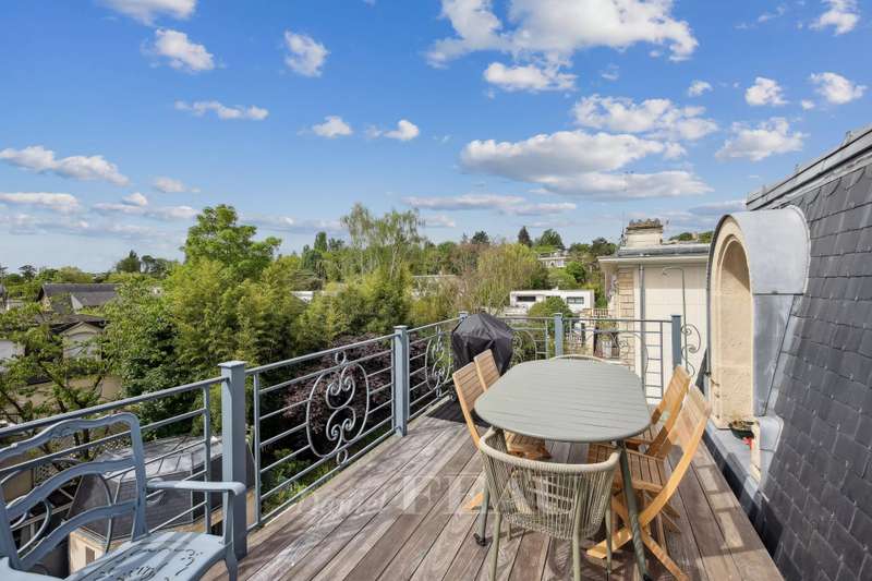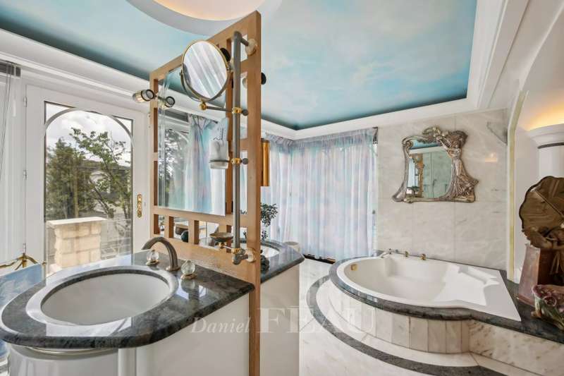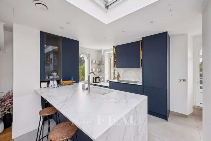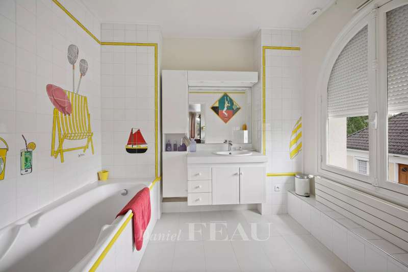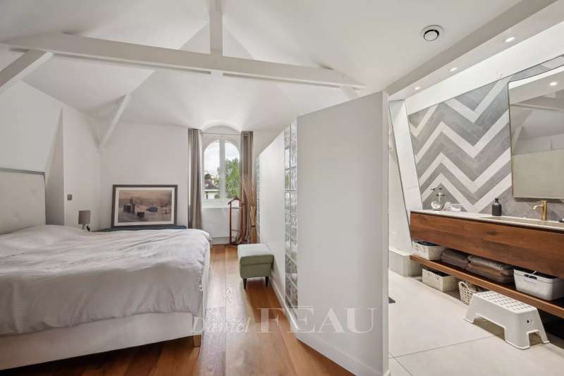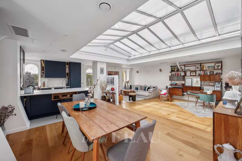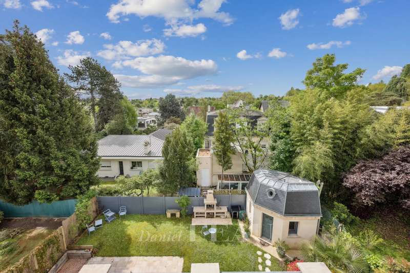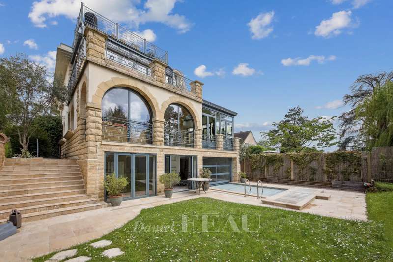 This exceptional 614 sqm mid 20th century property nestled in a cocoon of leafy greenery and benefiting from a landscaped garden is located in the sought-after Domaine de la Prairie d'Aulnay residence on the edge of the Parc de Sceaux and a few minutes from the station. 437 sqm of living space includes a spacious living/reception room with a dining room in a veranda bathed in sunshine, a kitchen with dining facilities, a spacious study and a bathroom. The 1st floor comprises two spacious suites with bath/shower rooms and a south-facing terrace. An entirely renovated split-level and self-contained loft-style apartment includes a spacious living/reception room, a dining room and open-plan kitchen opening onto a terrace, three bedrooms including a master suite with a bathroom and dressing room, and a second bathroom. Ample fitted storage space. The garden-level comprises a self-contained studio apartment. With an indoor swimming pool partially opening onto the exterior, a terrace, a caretaker’s lodge, a sauna with a shower, a utility room, a boiler room and four parking spaces. With easy access to the trunk roads and Orly Airport.