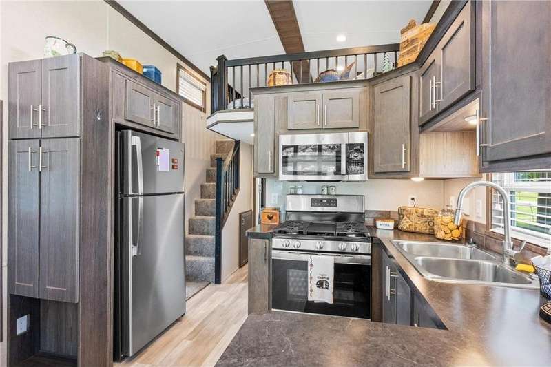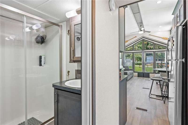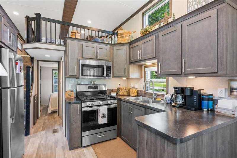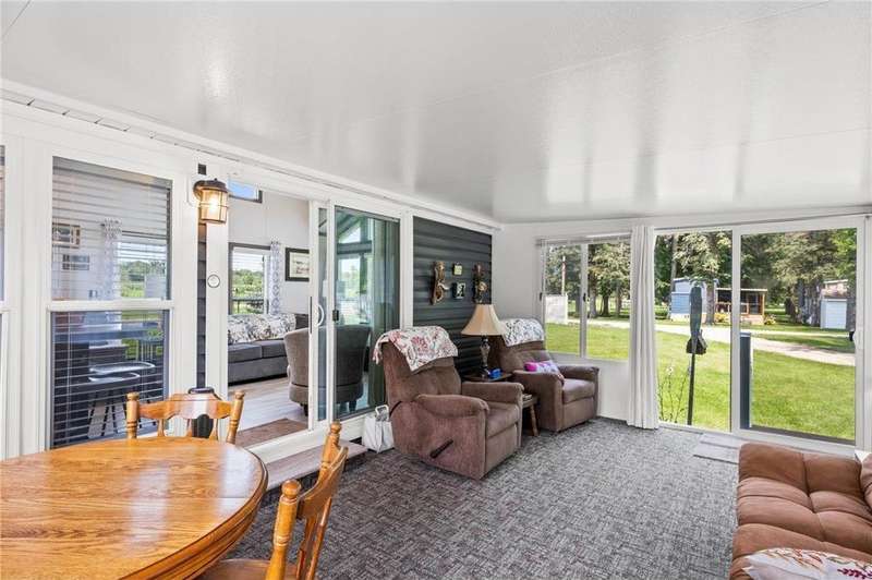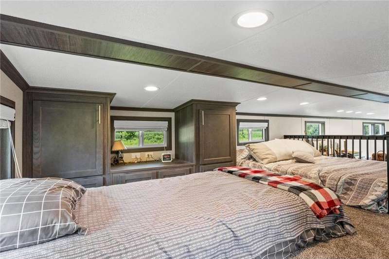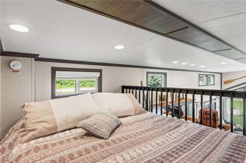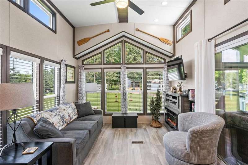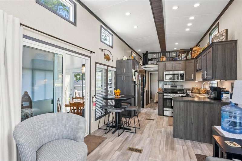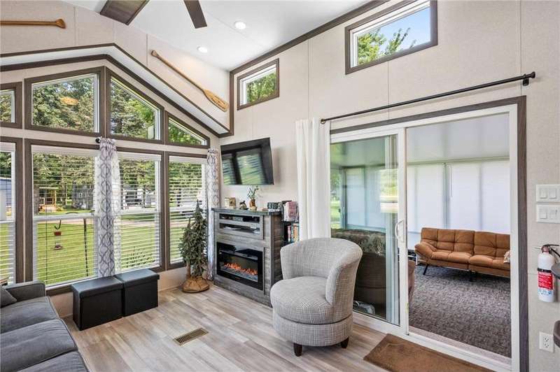 Own your own LOT and this Deluxe 2024 Kropf Park Model in Surfside Association-On Beautiful Lake Mary. Discover the perfect blend of comfort and convenience in this beautiful 2024 Kropf deluxe furnished park model in a meticulously maintained 21-unit association with 3.49 Acres and 322 ft of lakeshore for direct access to Lake Mary. Designed for relaxing getaways or extended stays, this fully furnished retreat features an inviting open layout with vaulted ceilings, an electric fireplace, ceiling fan, and expansive windows that fill the space with natural light. The main floor offers a private bedroom for added seclusion and a spacious 3/4 bathroom with modern finishes. The upper loft provides a flexible sleeping space with both a queen and a single bed, supported by a dedicated wall A/C unit in addition to the central air system. Thoughtfully designed storage solutions maximize space throughout. Enclosed porch, large deck, and adjoining patio—ideal for entertaining or simply taking in the peaceful surroundings. This property includes a boat slip and is part of an exclusive lake community offering a variety of shared amenities, including a clubhouse with a cozy library, pool table, and foosball. Anglers will appreciate the large stainless steel fish-cleaning sink, a dedicated freezer for fish remains, and an additional stocked ice freezer for owner convenience. Whether you’re looking for a serene lakeside retreat or a vibrant seasonal community, this deluxe 2024 Kropf park model delivers exceptional value and effortless enjoyment on beautiful Lake Mary. Surfside Association where the transfer of the real estate is by a warranty deed.