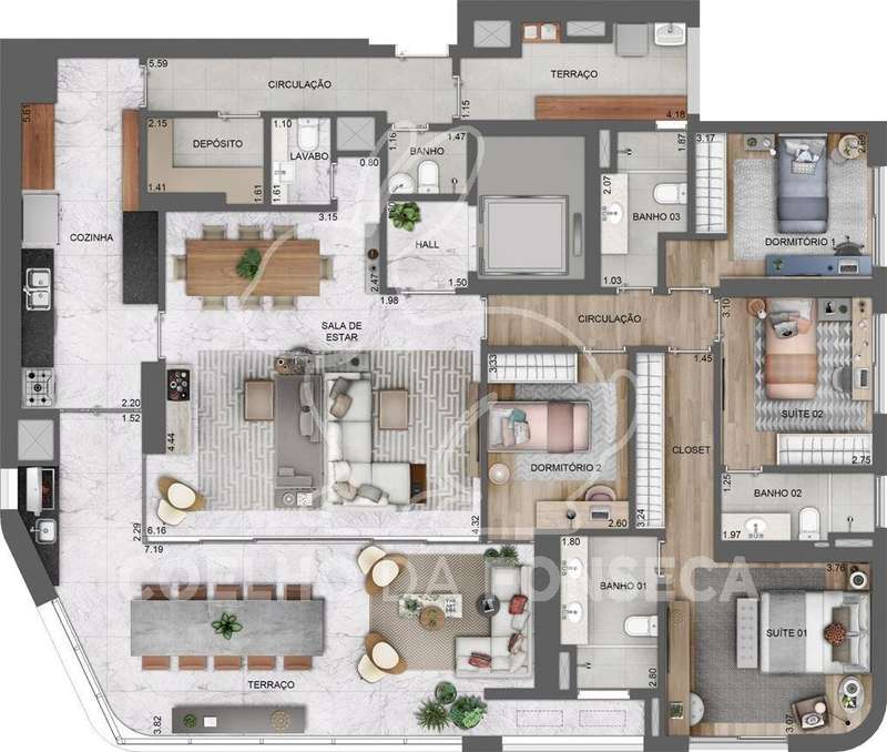 Apartamento no bairro Granja Julieta com 196m² área privativa/útil, 4 dormitório(s), 3 suíte(s), 3 vaga(s), 4 banheiro(s), terraço, varanda gourmet.