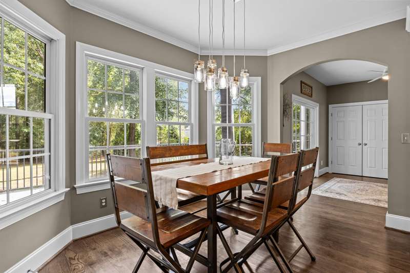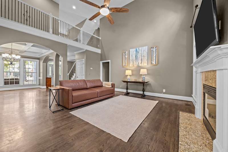 Tucked away on over an acre in a premier neighborhood, providing a rare combination of privacy, peaceful surroundings, and expansive outdoor living. It features over 3,700 square feet of thoughtfully designed space, including 4 bedrooms, 4.5 bathrooms, and a flexible layout that comfortably lives like a 5-bedroom. Yes, there IS a 5-bedroom septic permit.Inside, the home boasts exceptional craftsmanship with hardwood floors, coffered and tray ceilings, detailed crown molding, and custom finishes throughout. The main-level primary suite includes a cozy keeping room, perfect for relaxing. The chef's kitchen is equipped with 42'' custom cabinetry, granite countertops, and premium appliances, connecting seamlessly to a sunny breakfast nook and a bright three-season room overlooking the private, tree-lined backyard. There's a ''keeping Room'' that can easily be closed off from the kitchen that already has a closet and direct access to a full bath to create a 1st floor ensuite for special guests.The home is move-in ready with new carpet in some rooms and freshly painted bathrooms. Outside, you'll find a spacious composite deck, ideal for entertaining, and a private backyard surrounded by mature landscaping. Upstairs, there are three spacious bedrooms, two full bathrooms, and a large bonus room. The third-floor retreat with a half bath is perfect for a home theater, game room, or guest suite, and there's approximately 500 sq ft of walk-in storage. Recent upgrades include:* New Roof (2022) * Heat Pump (2019) * Tankless Water Heater (2021) * Black Gutters with Gutter Guards (2024) * New 3rd floor Carpet. Don't miss the 3-Car garage & Workshop area with built-in overhead shelving for your outdoor decorations and summer accessories. Envision yourself decorating for the large holiday gatherings this season. Enjoy conversations around the firepit, mingling with friends in this open floorplan and making memories.