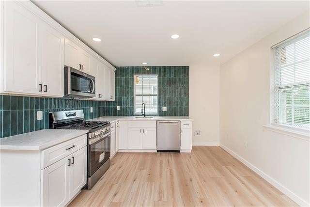 This raised cottage blends classic New Orleans charm with modern style. Step inside to find bright, open living spaces filled with natural light, fresh finishes, and a warm, inviting feel. The kitchen is a showstopper featuring stainless steel appliances, sleek stone countertops, and a stunning full-wall backsplash that makes a statement. Both bedrooms offer comfortable retreats, accompanied by two full updated bathrooms feel fresh and luxurious. Out back, the deep lot provides plenty of room to relax or entertain, complete with a spacious front porch for morning coffee. Enjoy your morning coffee on the picturesque front porch, and take advantage of the off-street driveway parking. This home is move-in ready, beautifully updated, and waiting for its next chapter. Schedule your tour today and see why this one is special!