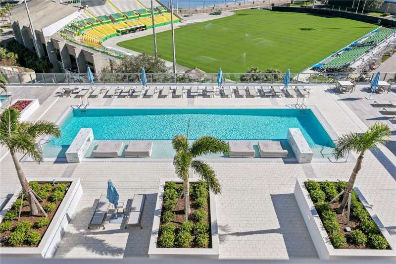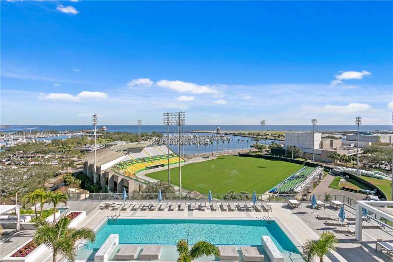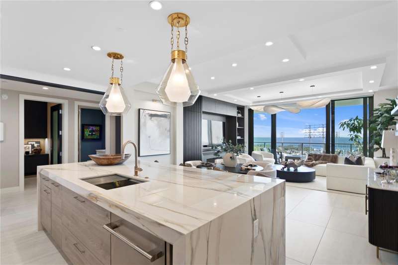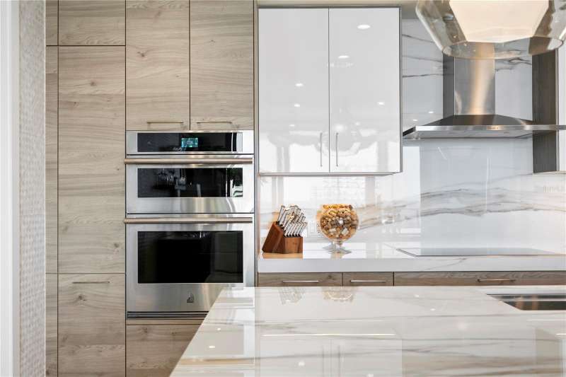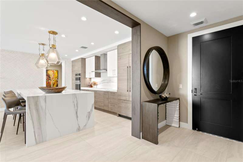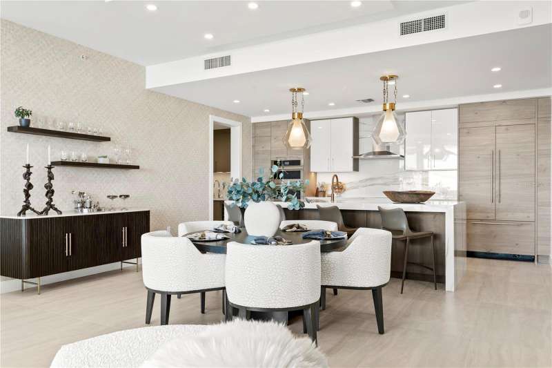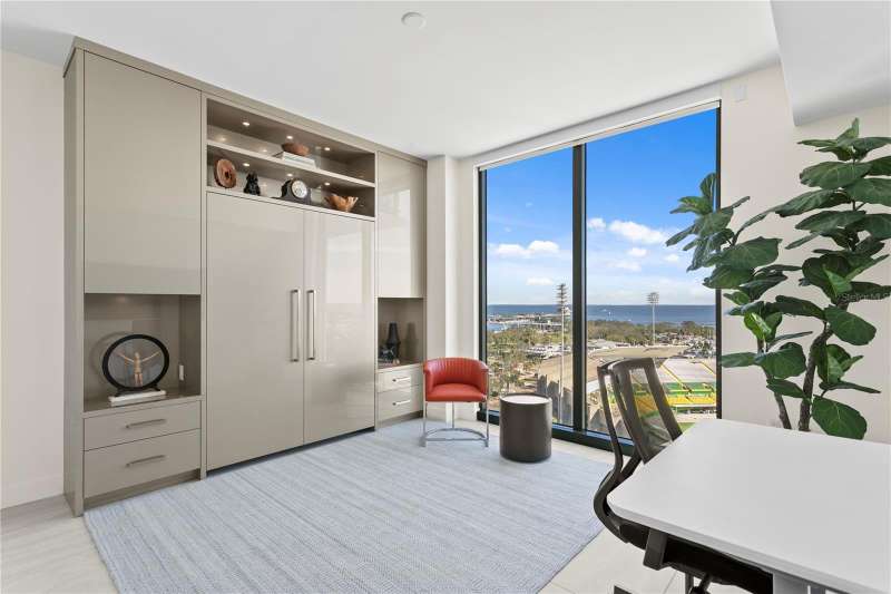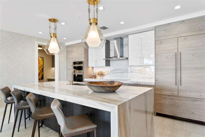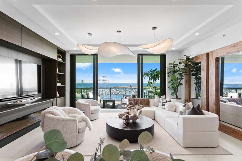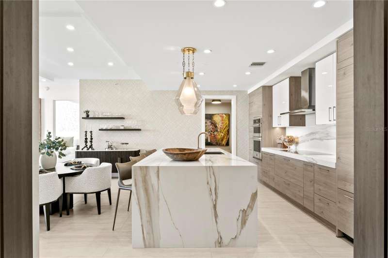 Fully Reimagined and designed in 2024, this new condo is a true masterpiece where every inch has been thoughtfully curated for the most discerning tastes. From the moment you step through the custom archway, the level of craftsmanship is evident, setting the tone for what's to come. The OPEN-CONCEPT LIVING SPACES are an absolute showstopper, featuring exquisite, HAND-SELECTED DESIGNER TOUCHES that elevate the space to another level of elegance. The main attraction is the CUSTOM MEDIA WALL WITH HIDDEN GUEST ROOM DOOR. The tone in the living room is set with THREE SILK-WRAPPED CHANDELIERS that illuminate, while a FRAMED ART WALL with TEXTURED WALLPAPER creates a bold statement. The ELEGANT TRAY CEILING with RECESSED LIGHTING enhances the sense of grandeur throughout the home. At the heart of this residence is a CHEF'S KITCHEN that is as beautiful as it is functional. The approx. 5'x11' EXPANDED ISLAND WITH A DOUBLE WATERFALL EDGE and concealed cabinetry, all WRAPPED IN SLEEK PORCELAIN, is a true work of art. The matching backsplash ties the entire space together in perfect harmony. The BUTLER'S PANTRY is a fusion of practicality and indulgence, complete with a WINE COOLER, QUARTZ COUNTERTOPS, CUSTOM CABINETRY, and laundry space, offering an unparalleled level of convenience. The DEN IS AN OASIS OF FUNCTIONALITY AND ELEGANCE, equipped with FULL-HEIGHT CUSTOM CABINETRY, an oversized chandelier that demands attention, and wallpapered accents for a refined, personalized touch. The OWNER'S SUITE OFFERS THE ULTIMATE RETREAT, combining peace and luxury with a WALLPAPERED ACCENT WALL, a DESIGNER CHANDELIER, and CUSTOM CLOSETS that are as stunning as they are spacious. The SPA-LIKE EN-SUITE BATH takes relaxation to the next level, boasting a CUSTOM LINEN CLOSET illuminated to highlight its beauty, along with three luxurious pendant lights. Every aspect of this home has been meticulously upgraded, from TILE FLOORING and LUTRON ELECTRIC BLINDS to thoughtfully curated designer finishes on walls, trim, and ceilings. As a resident of Saltaire, you'll enjoy world-class amenities including a resort-style pool, a state-of-the-art fitness center, expansive club rooms surrounded by glass that bring the outdoors in, and a pet-friendly dog park with a washing station. The 7th-floor terrace offers breathtaking panoramic views of the bay and downtown skyline, while the vibrant city life is just steps away from your front door. This is truly an extraordinary opportunity to live in a LUXURY HOME WHERE UNPARALLELED DESIGN MEETS EXTRAORDINARY CONVENIENCE. With the added peace of mind of the builder's warranty, this is a rare find in the heart of downtown.