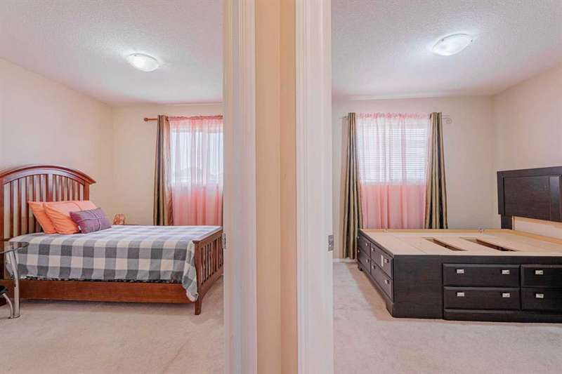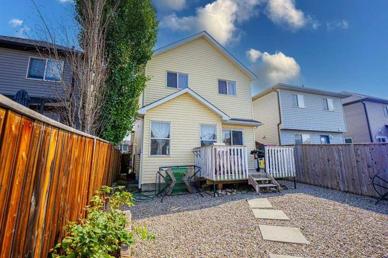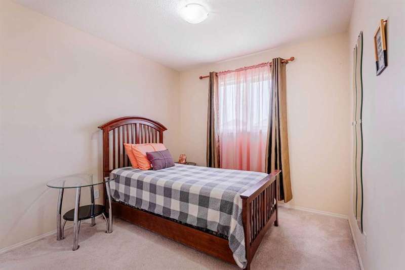 Step into a world where warm golden sunlight dances through every window and contemporary comfort meets family-friendly functionality. This impeccably maintained two-story residence whispers "welcome home" from the moment you arrive at its charming facade, where mature trees frame a picture-perfect streetscape. The heart of this home beats strongest in its sun-drenched main floor, where vibrant accent walls create an atmosphere of joy and sophistication. The open-concept kitchen sparkles with sleek laminate countertops, stainless steel appliances, and a generous peninsula that transforms meal prep into social occasions. Light wood cabinetry reaches skyward, offering abundant storage while maintaining an airy, open feel that flows seamlessly into the adjoining living spaces. Ascend the carpeted staircase to discover your private sanctuary – three thoughtfully appointed bedrooms bathed in natural light. The primary bedroom features the convenience of a private 4-piece ensuite, while a second full bathroom on this level ensures morning routines run smoothly for the entire family. But wait – there's more magic below. The fully finished basement reveals a stunning full bathroom with contemporary finishes – featuring a sleek floating vanity, modern tile work, and glass shower enclosure that wouldn't look out of place in a boutique hotel. This lower level offers versatile living space, perfect for a teen suite, home office, or entertainment haven. With its convenient side entrance, the possibilities are delightfully endless. Step outside to your own private oasis. The expansive backyard beckons with its low-maintenance gravel design, punctuated by stepping stones that lead to intimate gathering spaces. A raised garden bed promises summer tomatoes and fresh herbs, while the generous deck invites alfresco dining under Alberta's endless blue skies. The convenience of rear parking pad access means no more street parking hassles! Nestled in coveted Bridlewood, you're moments from the community's natural treasures – the serene Bridlewood Wetlands park and scenic pond that connects to Somerset, offering peaceful walking paths and exceptional birdwatching opportunities. This master-planned community features winding pathways, parks, and playgrounds, all while maintaining easy access to Shawnessy Shopping Centre, the C-Train, and major thoroughfares. Top-rated schools and recreational facilities complete this picture of suburban perfection. This isn't just a house – it's where your next chapter begins, wrapped in warmth, light, and endless possibility.