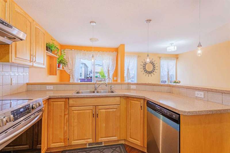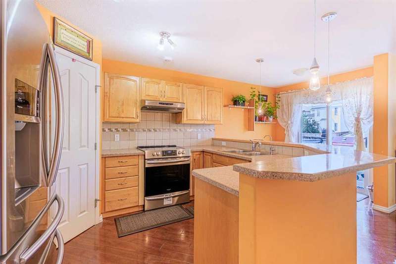 Step into a world where warm golden sunlight dances through every window and contemporary comfort meets family-friendly functionality. This impeccably maintained two-story residence whispers "welcome home" from the moment you arrive at its charming facade, where mature trees frame a picture-perfect streetscape. The heart of this home beats strongest in its sun-drenched main floor, where vibrant accent walls create an atmosphere of joy and sophistication. The open-concept kitchen sparkles with sleek laminate countertops, stainless steel appliances, and a generous peninsula that transforms meal prep into social occasions. Light wood cabinetry reaches skyward, offering abundant storage while maintaining an airy, open feel that flows seamlessly into the adjoining living spaces. Ascend the carpeted staircase to discover your private sanctuary – three thoughtfully appointed bedrooms bathed in natural light. The primary bedroom features the convenience of a private 4-piece ensuite, while a second full bathroom on this level ensures morning routines run smoothly for the entire family. But wait – there's more magic below. The fully finished basement reveals a stunning full bathroom with contemporary finishes – featuring a sleek floating vanity, modern tile work, and glass shower enclosure that wouldn't look out of place in a boutique hotel. This lower level offers versatile living space, perfect for a teen suite, home office, or entertainment haven. With its convenient side entrance, the possibilities are delightfully endless. Step outside to your own private oasis. The expansive backyard beckons with its low-maintenance gravel design, punctuated by stepping stones that lead to intimate gathering spaces. A raised garden bed promises summer tomatoes and fresh herbs, while the generous deck invites alfresco dining under Alberta's endless blue skies. The convenience of rear parking pad access means no more street parking hassles! Nestled in coveted Bridlewood, you're moments from the community's natural treasures – the serene Bridlewood Wetlands park and scenic pond that connects to Somerset, offering peaceful walking paths and exceptional birdwatching opportunities. This master-planned community features winding pathways, parks, and playgrounds, all while maintaining easy access to Shawnessy Shopping Centre, the C-Train, and major thoroughfares. Top-rated schools and recreational facilities complete this picture of suburban perfection. This isn't just a house – it's where your next chapter begins, wrapped in warmth, light, and endless possibility.