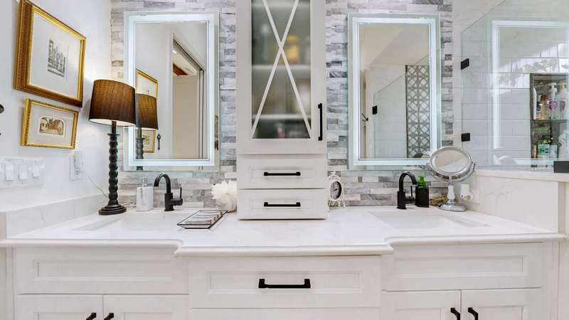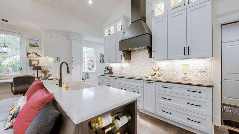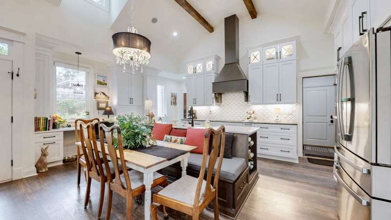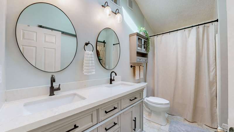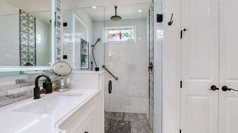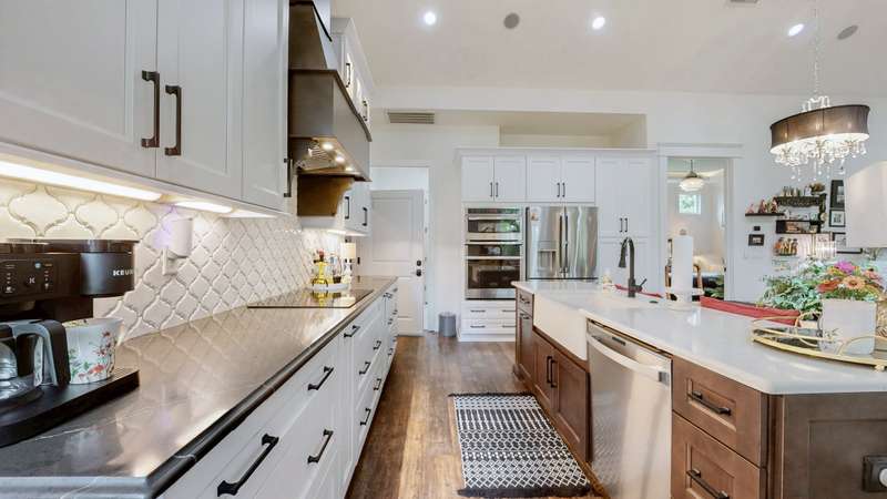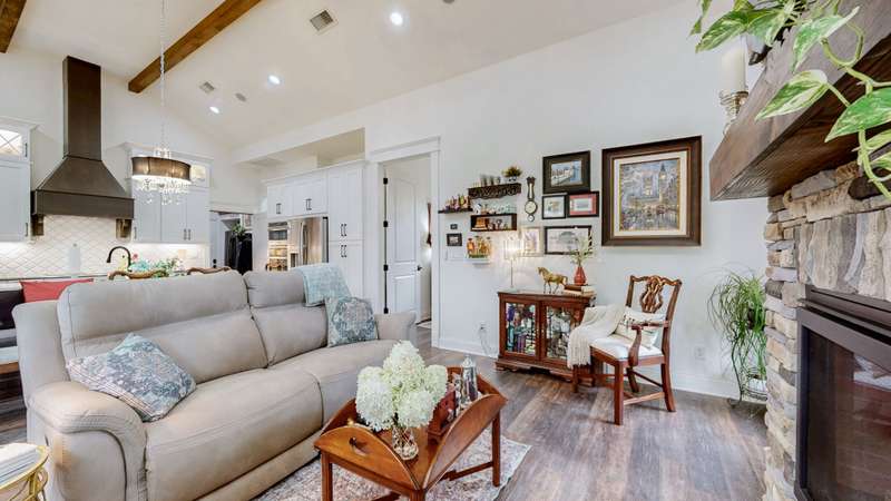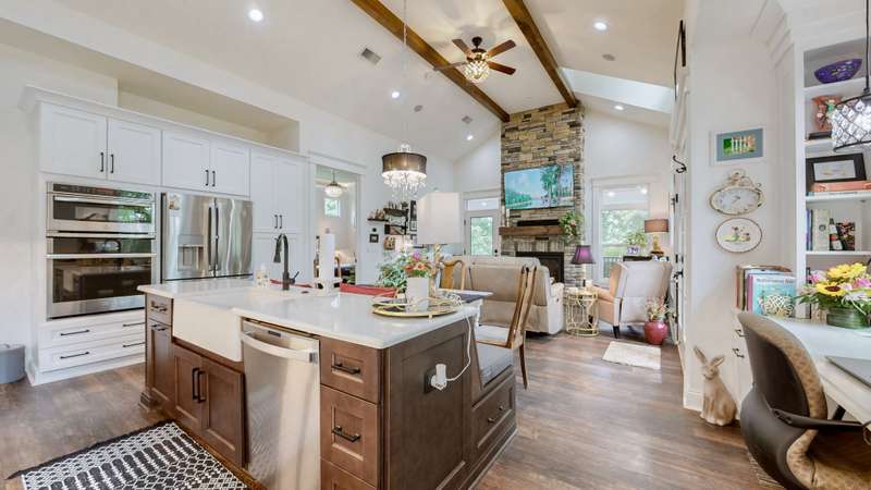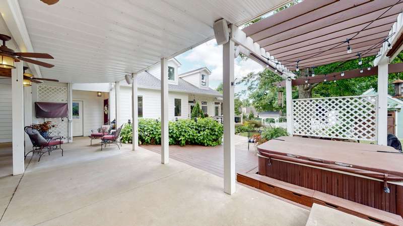 Fabulous updated home with stunning separate in-law home! A front porch invites you into this completely renovated interior that is Amazing opportunity to live in one house and rent the other! Two homes thoughtfully attached for in-laws or separate living* Updated throughout with on trend colors* Soaring ceilings in the elegant and functional Kitchen, custom cabinetry and upscale appliances make cooking a delight* Amazing theatre room makes movie time an unforgettable experience with the magic of cinema in your own home* Enjoy outdoor entertaining on the massive deck with a grilling area and the covered patio and hot tub overlooking plush plants and private sanctuary* Enter the separate in-law home through iron gates and be welcomed with vaulted ceilings and a stacked stone fireplace! A Chef's delight Kitchen with custom cabinets, quartz countertops, stainless appliances and tons of storage* Open and airy great room that is drenched in natural light and extends to a screened porch overlooking the lush lawn* A luxurious Primary retreat with a spa-like bath enhances this separate home* Truly an incredible opportunity to own 2 homes for you and your family members or as a rental income.