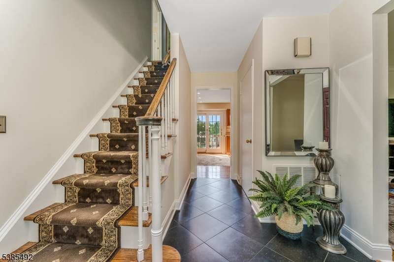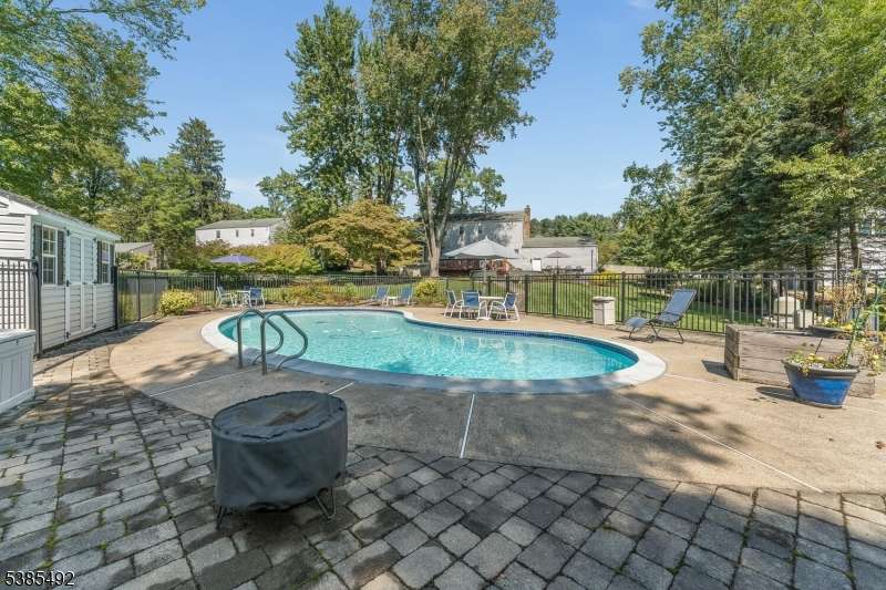 This classic Colonial in the heart of desirable Historic Brookside section of Mendham Township only six miles west of Morristown, and Perfectly positioned on a tree-lined street. This four bedroom, two full baths and powder room. The dining room is graced with a gas fireplace. The Chef's kitchen boasts an open concept, including a Wolf stove/oven, granite countertops with an Island seated breakfast nook, stainless steel appliances, ample custom cabinets, large pantries. Open to the tall, vaulted ceiling sunroom with a wall of sun-drenched windows and skylights that lead outside from the glass doors to the large 23x12 deck. A paver patio and paver walk way to the saltwater in-ground heated gunite pool. More highlights include; Hardwood floors, laundry room on the first level, paved blacktop driveway, attached two car garage, covered portico entrance, public water and gas, finished basement and storage. Country living yet minutes from shops, schools, restaurants, and Patriots Path hiking trail, and blocks from Brookside Beach.