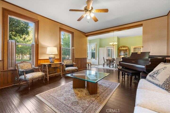 Steeped in history and timeless elegance, this Gothic Revival treasure, built in 1883, stands proudly on a picturesque corner lot overlooking Memorial Park and just steps from the Sacramento River. Its graceful architecture, tall ceilings, and three stately fireplaces evoke the grandeur of a bygone era. Sunlight filters through many windows allowing plenty of natural light. The sunroom and sleeping porch offer inviting quiet reflection space, while the formal living room offers an exquisite setting for gatherings. A private balcony provides an excellent opportunities to listen to summer music concerts. The updated kitchen thoughtfully marries modern convenience with historic character. With its freshly renewed exterior and interior paint, this home radiates both old-world romance and enduring beauty an heirloom property ready to be cherished for generations to come.