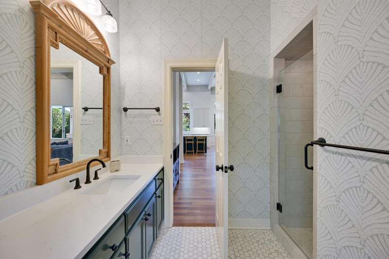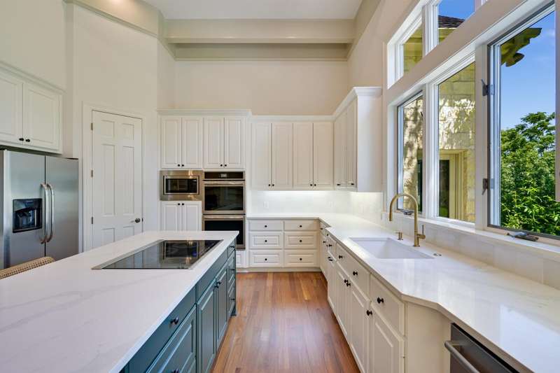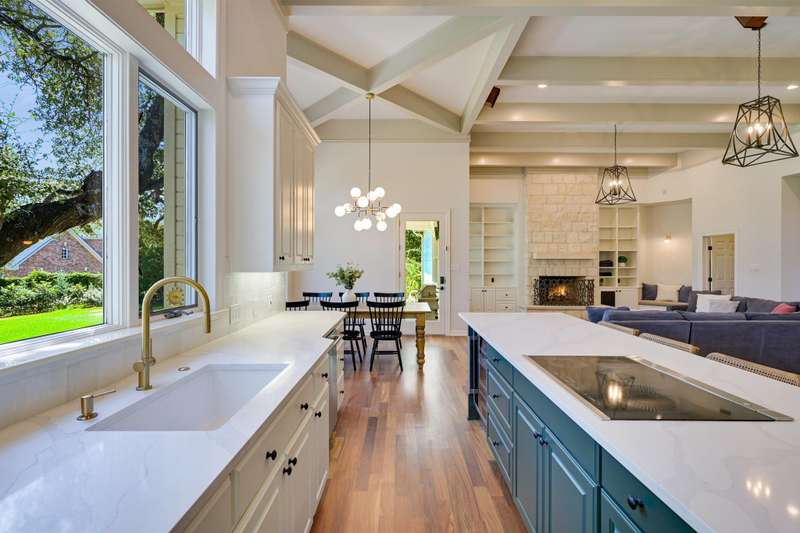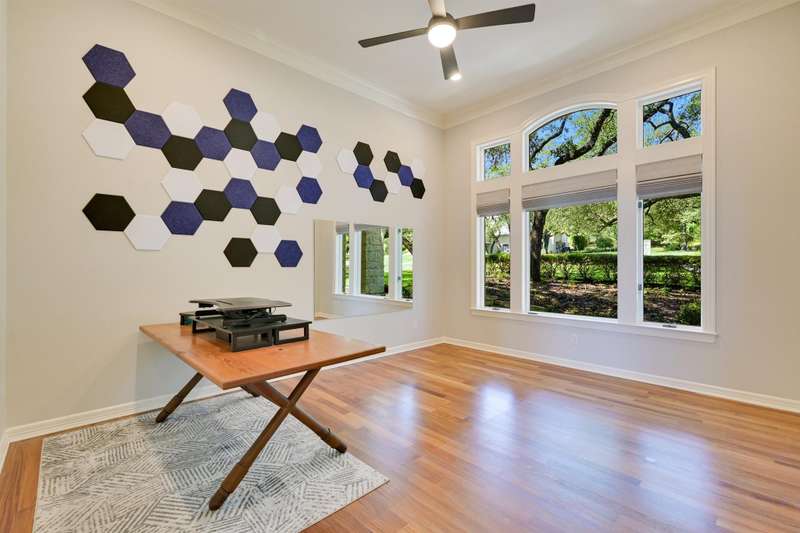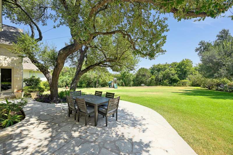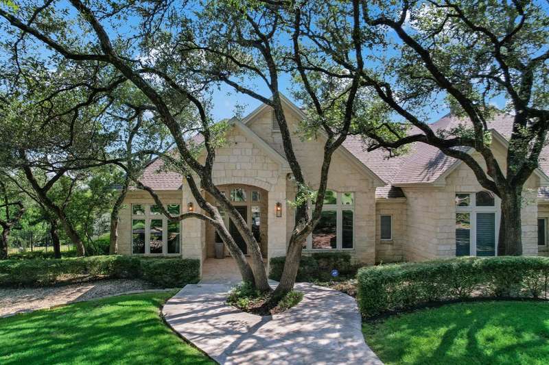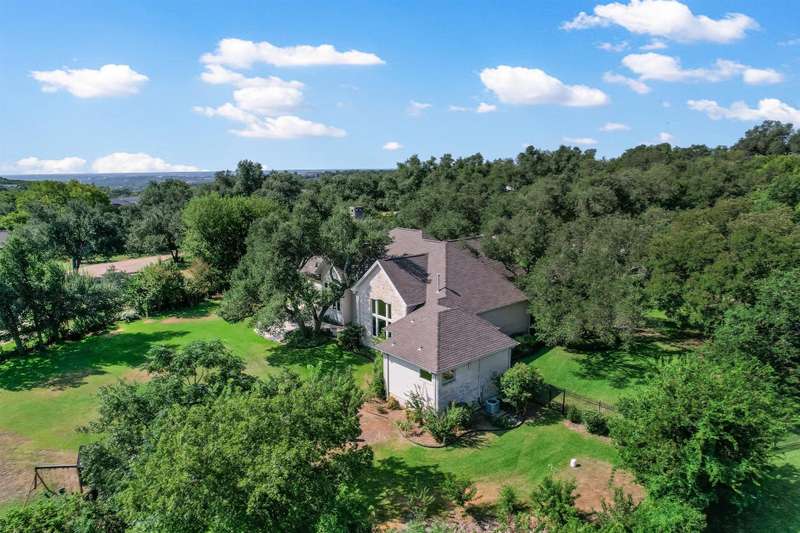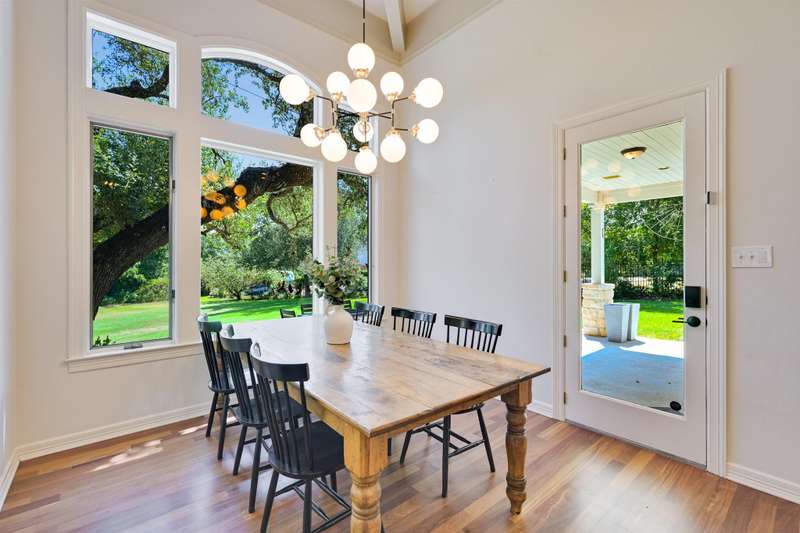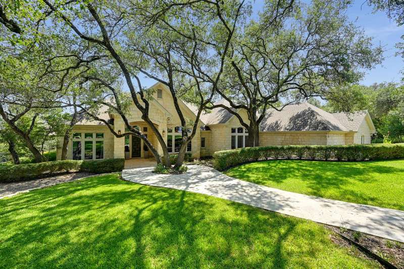 What an amazing opportunity to own this incredible one story home in the highly desired Blackacre Estates area on Blackacre Trail! As you walk on the lovely stone sidewalk to the beautiful front door, this home offers serenity and elegance. Featuring hardwood floors throughout, 4 large bedrooms and 4 baths, 2 living areas, wood paneled office with builtins, flex or dining room, updated kitchen and open floor plan, this home is ready for a new owner. High ceilings, vaulted and beamed ceilings with wonderful lighting all add to the ambiance. The family room is open to the kitchen and dining area with a large stone fireplace. The kitchen has been updated with double ovens, wine refrigerator, walk in pantry and large breakfast bar. You will also find a breakfast/dining room table with great windows overlooking the lovely back yard. The primary bedroom has an updated bath with glass walk in shower, dual vanities, frees standing bathtub and walk in closet.