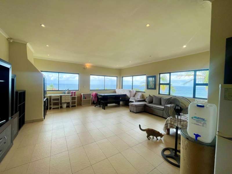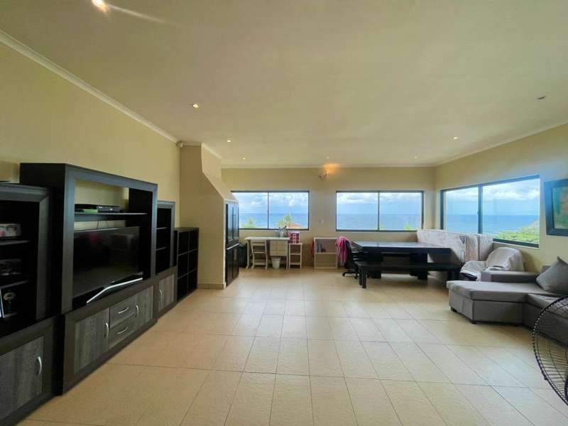 Situated in a great location is this beautiful home with so much to offer and within close proximity to all necessary amenities. The main house consists of three bedrooms, two bathrooms , one of which is an en-suite bathroom and a spacious open plan living area with seaviews . There is a covered patio with a built in braai area as well as a separate scullery with a laundry area. The upper level is a separate flatlet which consists of two bedrooms, two bathrooms, one of which is an en-suite bathroom, an open planned living area with a built in braai and views to die for . With a great stretch of scenic views and sea views of Margate coastline area. There is a double garage as well as ample parking in the yard. The yard itself is quite spacious for kids and our furry little friends to play. Call me today to view this wonderful offer.