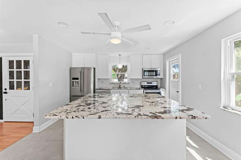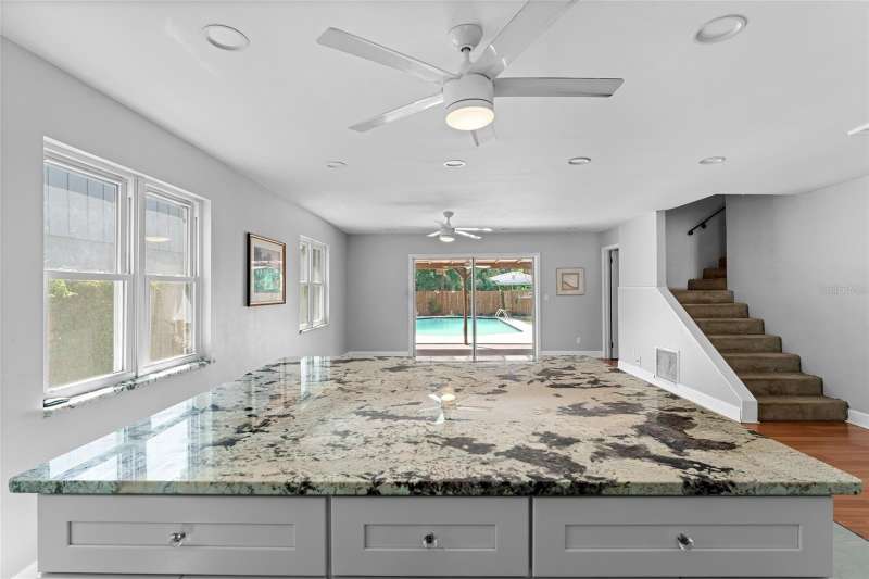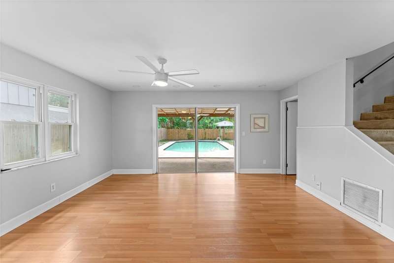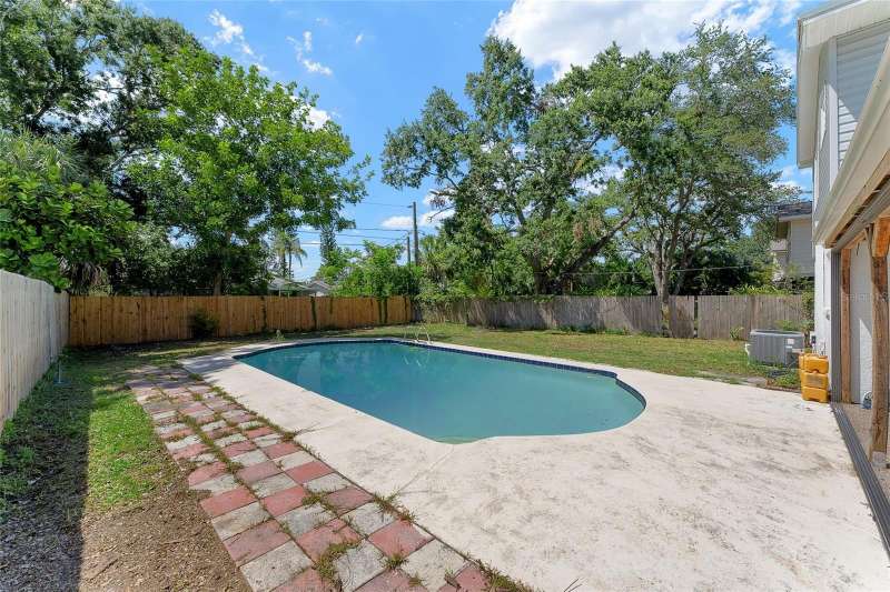 Under contract-accepting backup offers. One or more photo(s) has been virtually staged. Welcome to this spacious and well maintained 4 bedroom, 2 bath pool home with an updated kitchen located in highly sought-after Northeast St. Petersburg! Boasting a thoughtful two-story layout, this residence features a desirable first-floor master suite offering privacy and convenience, while three additional bedrooms and a full bath are situated upstairs – ideal for family, guests, or a home office setup. Step into the heart of the home – the updated kitchen – complete with a center island, modern cabinetry, and ample counter space, perfect for cooking, entertaining, or gathering with loved ones. The open-concept design flows seamlessly into the living and dining areas, creating a warm and inviting atmosphere throughout. Situated just off of 1st Street North which features The North Bay Trail. The southern end begins in downtown St. Petersburg with an easy connection to the scenic 50-mile Fred Marquis Pinellas Trail at Bay Shore Drive SE. From there, the trail heads north along Tampa Bay, offering enjoyable views of the water, busy marinas, palm trees and beaches. The trail turns inland at Coffeepot Bayou, which is lined with beautiful waterfront homes in the Old Northeast neighborhood. A busy commercial area follows as the trail closely parallels 1st Street NE. After crossing a pedestrian bridge at 79th Avenue NE, the trail turns back east and head up to 83rd Avenue North. Enjoy Florida living at its best with your own private pool, ideal for relaxing, hosting weekend barbecues, or cooling off during the summer months. The covered lanai with ceiling fan provides shaded space to cool off after your swim. A two-car garage adds plenty of storage and convenience, and the low-maintenance yard allows for more time spent enjoying your home. This property remained high and dry with no flooding during last year’s hurricanes, offering peace of mind for years to come. Just minutes to vibrant downtown St. Pete, parks, schools, shopping, and the beautiful Gulf beaches – this is the perfect place to call home! Don't miss your chance to own this gem in one of St. Pete's most desirable neighborhoods!
