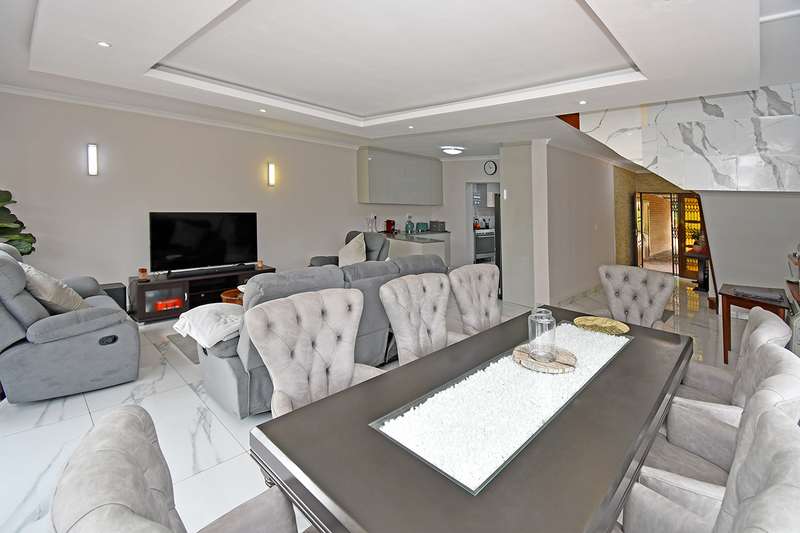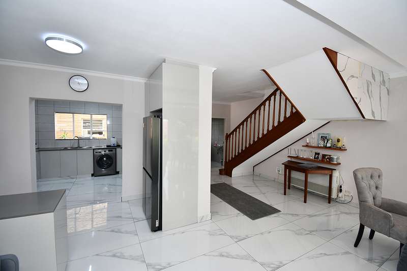 STUNNING, MODERN 3 BEDROOM TOWN HOUSE FOR SALE IN EDENGLEN BOOMED OFF AREA 3 Bedrooms, 2 Bathrooms, Balcony. 1 Guest Toilet. Lounge, Kitchen, Dining room. Patio. Landscape Garden. 1 Garage. Double carport parking. Court yard. Entrance hall. Flooring- Porcelain tiles and laminate flooring. This beautifully renovated three-bedroom townhouse truly "ticks all the boxes." It features a modern, open-plan kitchen, lounge, and dining room area. The kitchen is equipped with granite countertops, a gas stove, and ample cupboard space, with room for one appliance. A guest toilet is conveniently located downstairs, and the property boasts a lovely landscaped garden and patio. Upstairs, you'll find three spacious bedrooms and two bathrooms, one of which is a main en-suite, along with a balcony. The property includes one garage with a loft for extra storage and two carport parking spaces. There is also extra cupboard space on the landing near the bedrooms. Flooring throughout the home consists of porcelain tiles and laminate flooring. The complex offers a communal pool, braai area, and visitors' parking. Please note it is a Non Pet friendly complex. Call us to arrange a viewing, let's find you a dream home .