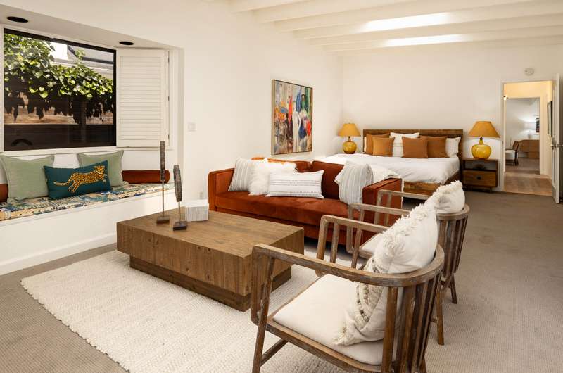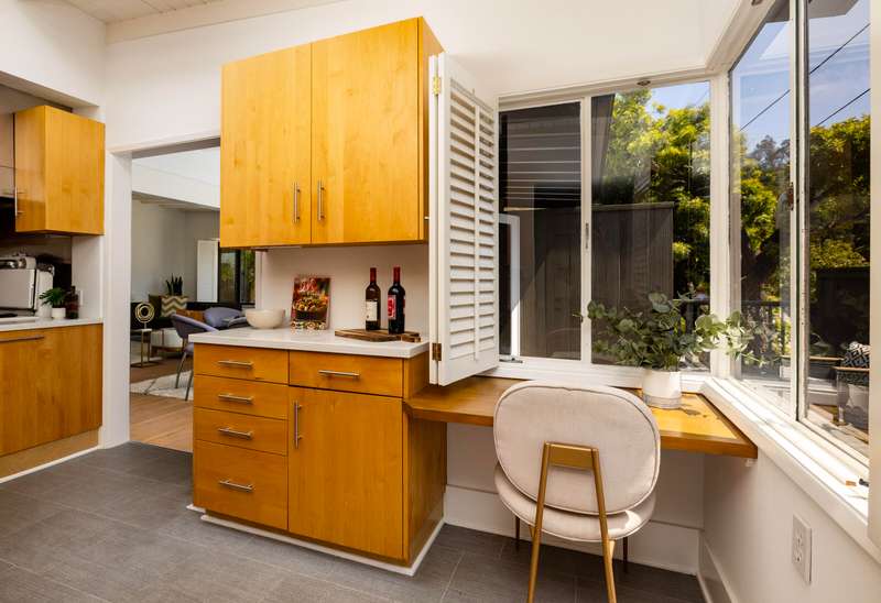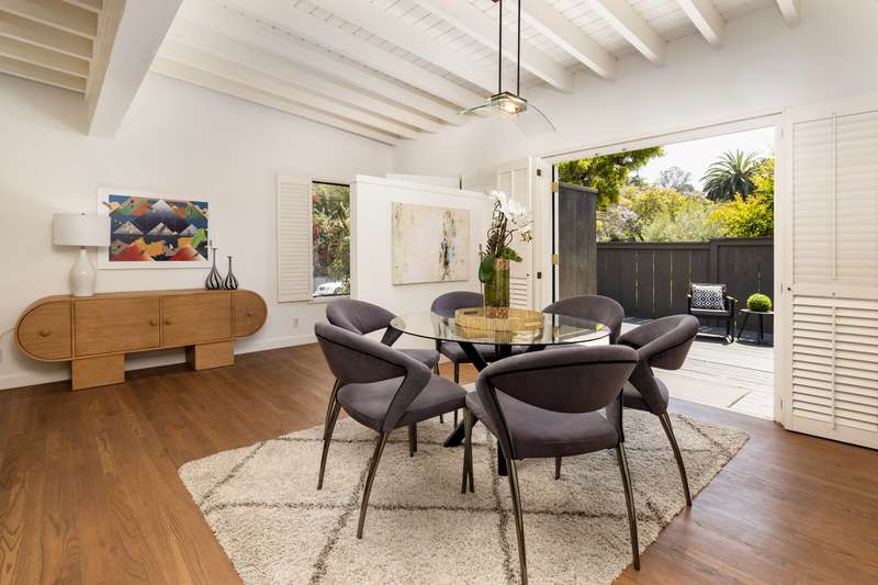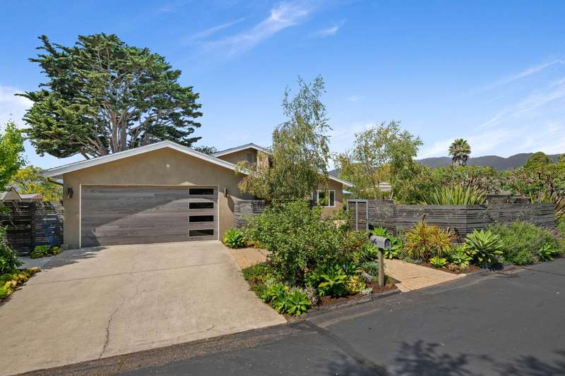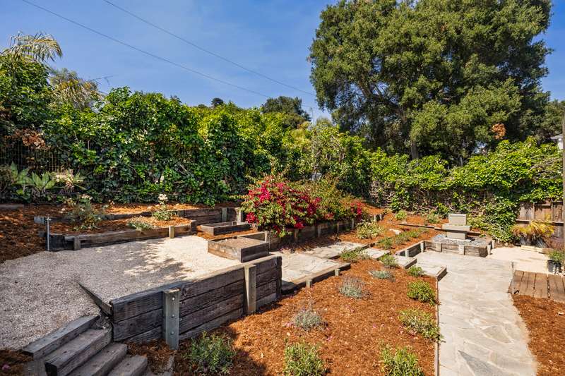 Nestled close to the Mesa & in one of Santa Barbara's most desirable neighborhoods you'll stumble upon 1330 Valerio. Originally constructed in 1951 this single level mid-century modern home blends timeless design with thoughtful updates. Thirteen-thirty offers light filled living spaces, modern amenities and vintage charm. The living room features an exposed beam ceiling, solid oak floors, a wood burning fireplace, multiple skylights & a south facing bay window. The kitchen combines a vintage O'Keefe & Merritt stove with modern updates like a Bosch dishwasher & contemporary style cabinetry. Wander beyond the kitchen to an expansive primary suite which includes a large sitting area w/ a fireplace, a custom en-suite bath, laundry and French doors leading to the backyard. The second bedroom and bath are ideal for guests, family or a home office. Garden spaces feature beautiful drought tolerant landscaping, fruit trees and outdoor living spaces. Attached to the home is a fully finished 1 car garage that can be easily accessed off of Calle Cerro. This home is located in a beautiful neighborhood just a short distance to Eilings Park, Hendry's Beach & the Mesa!