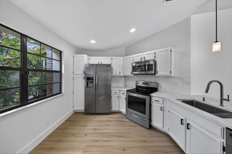 MUST SEE! LOCATION! LOCATION! Tastefully, renovated corner unit with 3 bedrooms, 2 bathrooms, move-in ready condo/townhome in Provence Community that features vaulted/volume ceilings with recessed lighting throughout and ample upgrades including renovated bathrooms, premium waterproof vinyl flooring throughout with a private garage and community pool. Provence Community is centrally located in Boca Raton, close to upscale shopping, restaurants, parks with top-rated schools, universities and major highways.
