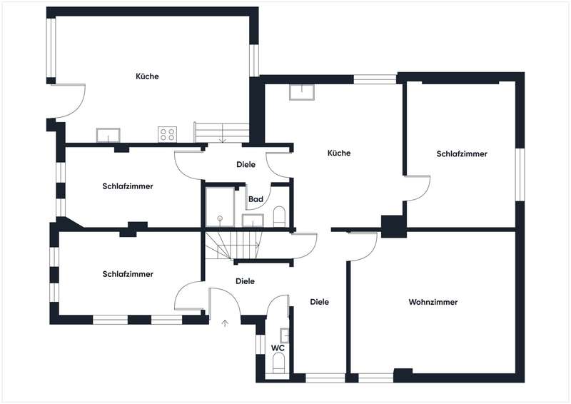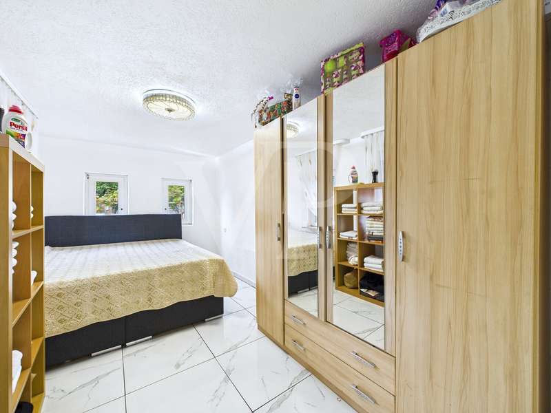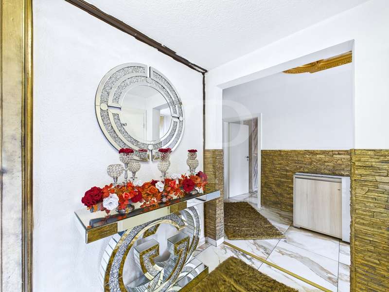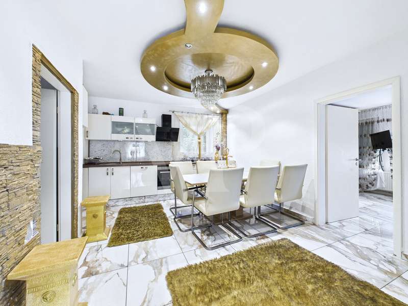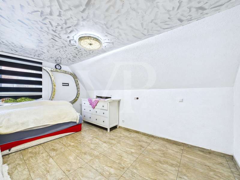 This spacious property from 1951 impresses on a generous plot of 692 m² and a living space of approx. 177.71 m². Originally designed as a semi-detached house with two separate halves, these were merged into one unit over time, creating an open and flexible interior design. With a total of eight rooms, two kitchens and a well thought-out room layout, the property offers plenty of space for the whole family, multi-generational living or working from home. As soon as you enter the house, you are greeted by a hallway leading to the first bedroom and the practical guest WC. The bright, spacious living room and kitchen form the heart of the first floor. There are also two further bedrooms, a bathroom and an additional kitchen on the first floor - ideal for families or guests. Four further bedrooms await you on the top floor, which can be used flexibly as children's rooms, guest rooms or home offices. An additional expansion reserve offers potential for further living or hobby rooms - according to your individual needs. External blinds provide sun protection and privacy, while the bright interior design creates a friendly living atmosphere throughout the house. With just a little renovation work, this property can become your own dream home - customizable according to your wishes and needs, with a solid foundation to build on. Outside, there is a covered terrace that invites you to spend relaxing hours outdoors and offers a view of the well-tended garden with fruit trees. The property not only impresses with its size, but also with practical benefits such as low-maintenance landscaping and numerous parking spaces directly on the premises. The convenient location rounds off the offer: whether it's to work, school or for errands - the good connections to local transport and the road network mean you can get around quickly and flexibly. This detached house offers a rare combination of space, functionality and potential - ideal for anyone who wants to combine spacious living with versatile usage options.