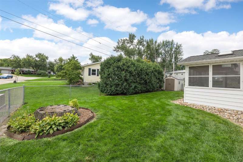 This inviting ranch offers over 1,900 square feet of living space and sits on a corner lot shaded by a beautiful mature tree. Located in a fantastic neighborhood, it’s close to schools, shopping, and all the conveniences of the northeast side, with quick access to I-380. Inside, the main floor features three bedrooms and two bathrooms, including a primary suite with its own ensuite bath. The spacious living room is filled with natural light, while the kitchen has been refreshed with quartz countertops, a large vessel sink, and updated stainless steel appliances—including a refrigerator, gas range, and dishwasher. A three-season room with skylights overlooks the fenced backyard and opens to the patio—perfect for relaxing or entertaining. The yard also includes a handy storage shed. The lower level is partially finished and offers a bathroom for added flexibility. A two-car garage completes the home. ALLIANT ENERGY MONTHLY AVERAGE ELECTRIC: $199 MID AMERICAN MONTHLY AVERAGE GAS: $47 | Buyer should verify property taxes and the sq. ft. themselves | Seller requires 24 hour response to any offer