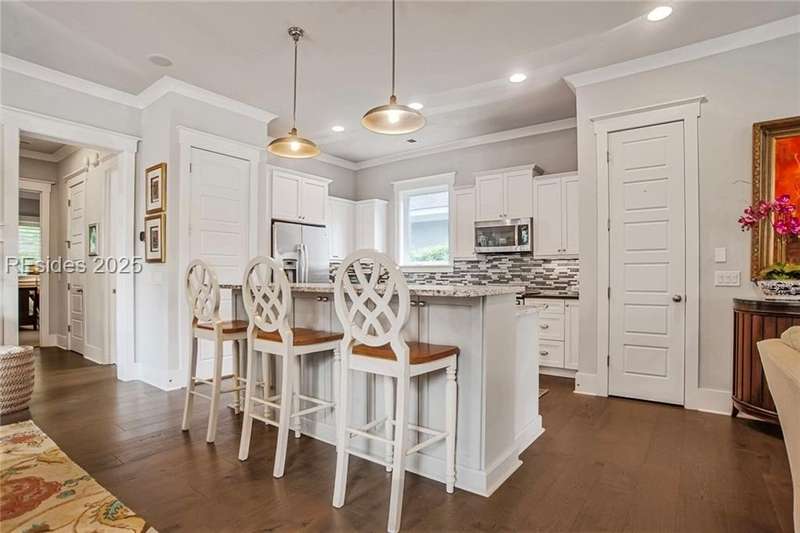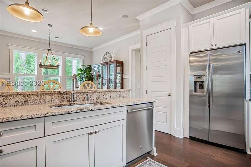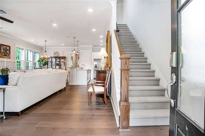 This Hampton Lake 4-bedroom, 4.5-bathroom home blends elegance, comfort, and versatility in every detail. Located in a peaceful setting, this thoughtfully designed residence offers a spacious front and upstairs porch that invites relaxation and conversation, while the open-concept layout inside creates a natural flow between the Family, Dining, and Kitchen areas ideal for both daily living. The heart of the home is the beautifully appointed kitchen, seamlessly connected to the living spaces and filled with natural light. Just off the main living area, a private screened porch overlooks a tranquil wooded preserve providing the perfect spot to enjoy morning coffee, evening breezes, and the peaceful beauty of nature. The primary suite is located on the first floor, offering comfort and convenience with a spacious bathroom and walk-in closet. Upstairs, you'll find two generously sized bedrooms and two full bathrooms, along with flexible space that can be easily converted into a fourth bedroom, office, or bonus room tailored to fit your lifestyle. A standout feature of this property is the detached 3-car garage with a fully equipped carriage house above. This separate living space includes a bedroom, full bathroom, kitchen and living area, an excellent option for multi-generational living or guests. Every inch of this home is designed with purpose, providing the perfect balance of private retreats and open gathering spaces. Whether hosting family, working from home, or simply enjoying quiet moments, this home offers the flexibility to grow and evolve with your needs. Set on a serene homesite with mature trees and thoughtful landscaping, the home combines refined charm with modern convenience. From the quality craftsmanship to the smart layout and abundance of natural light, this is a home where every detail has been carefully considered. Don't miss the opportunity to make this exceptional property your own where style, space, and serenity come together in perfect harmony.